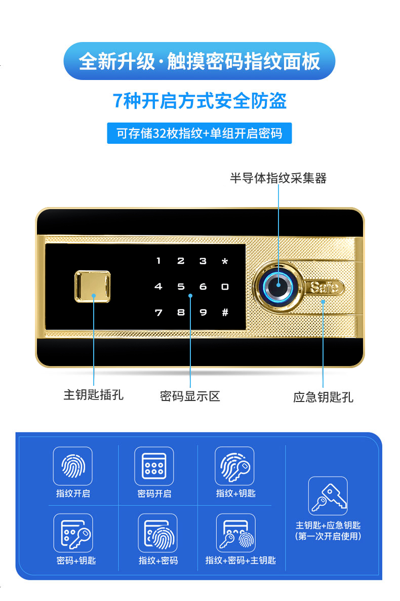 商品名称:黑石60CM保险柜家用小型保险箱办公指纹密码解锁典雅黑