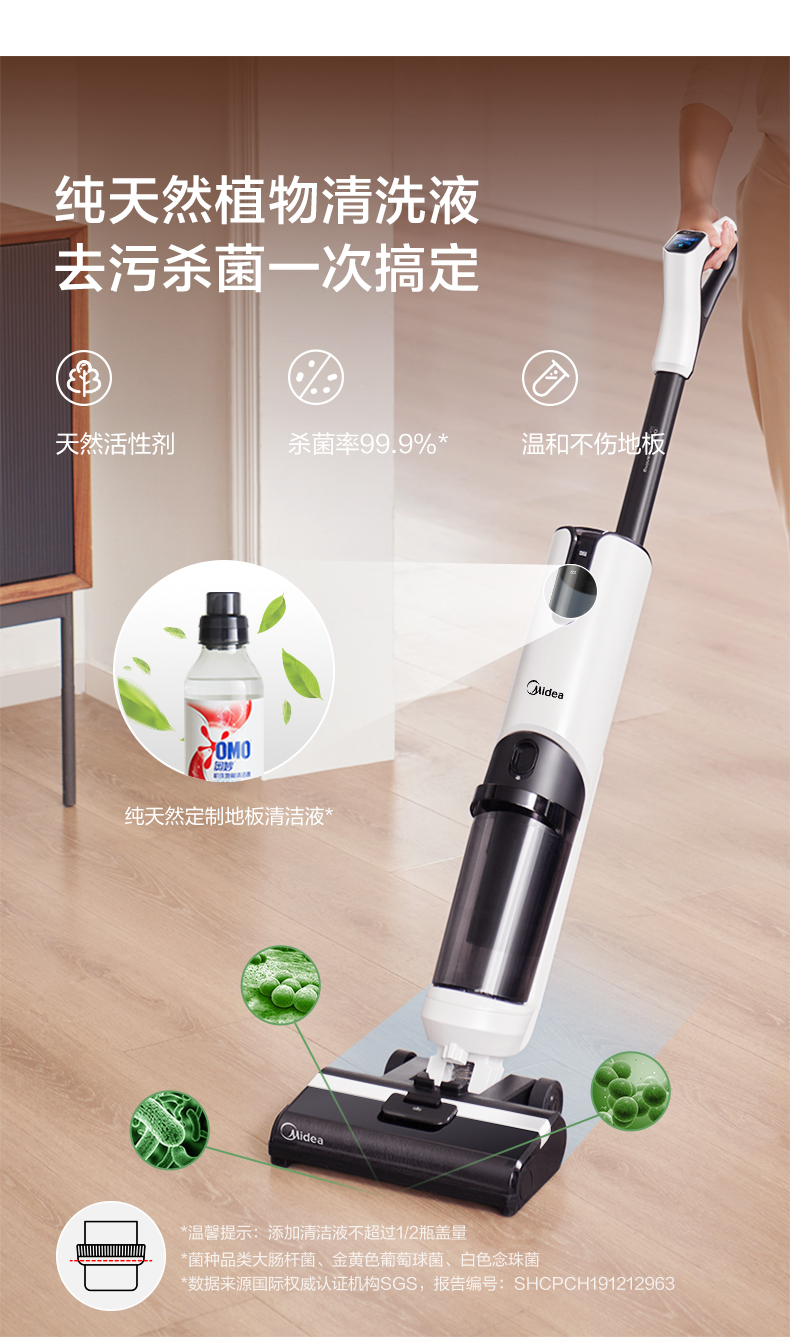 商品名称:美的洗地机X8无线智能除菌吸尘器家用吸拖洗一体手持无线清洁拖地机活水自清洁