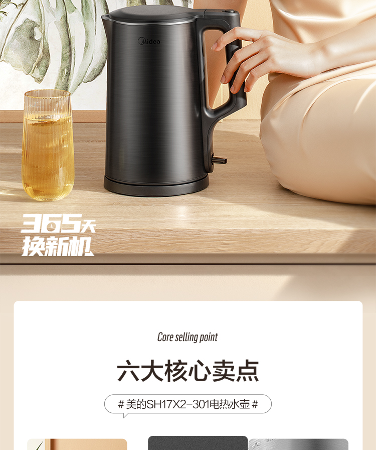 商品名称:美的(Midea)电水壶双层防烫烧水壶热水壶全钢无缝内胆电热水壶17x2301 1.7L大容量