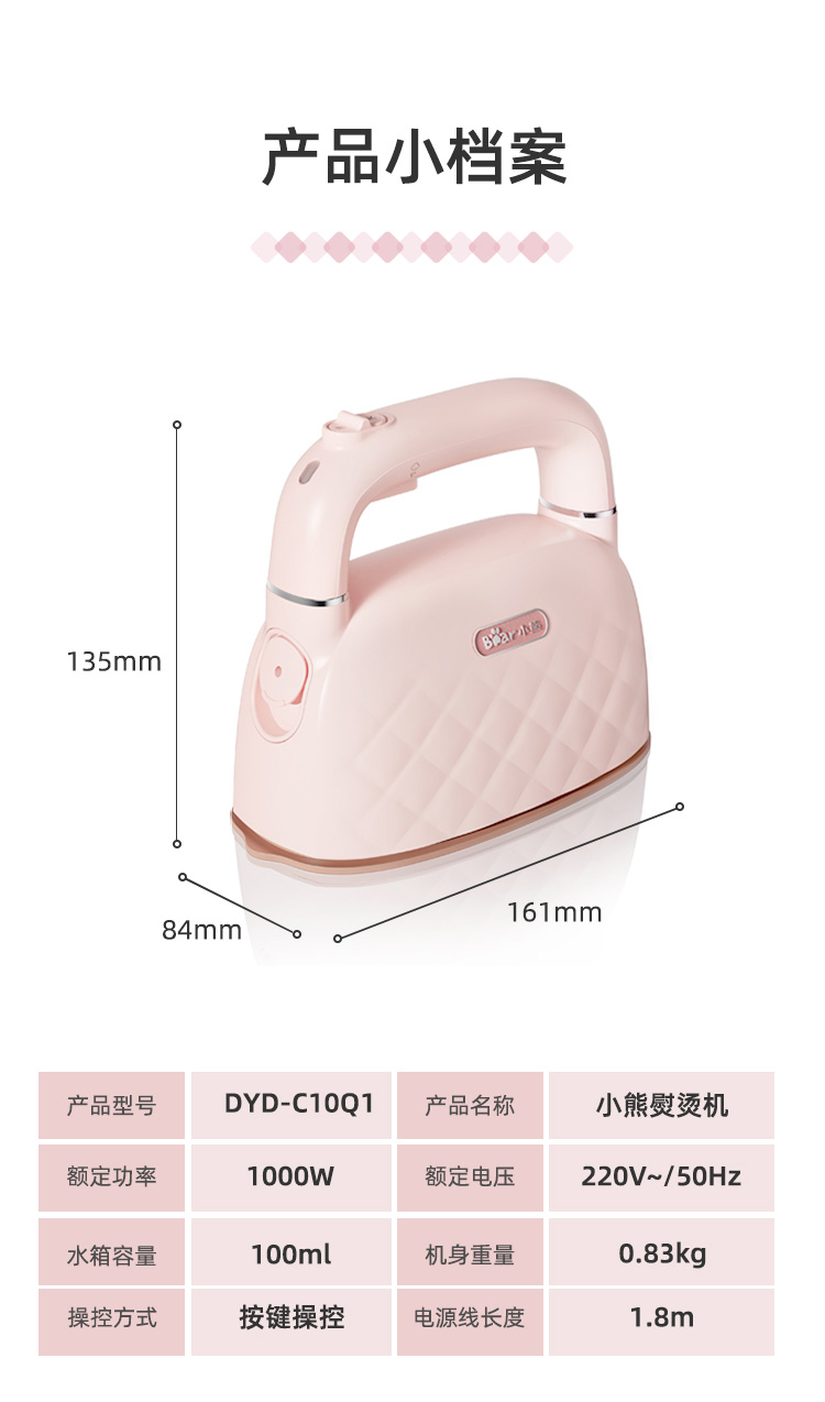商品名称:小熊(Bear)挂烫机蒸汽熨斗熨烫机家用电熨斗烫斗蒸汽机迷你手持挂烫机小型商用便携DYDC10Q1粉色