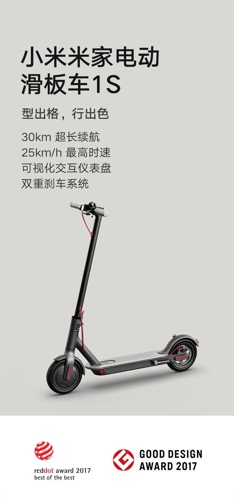 商品名称:小米米家电动滑板车1S 九号滑板车白色 男女成人 便携可折叠电动代步体感车30km续航 智能出行