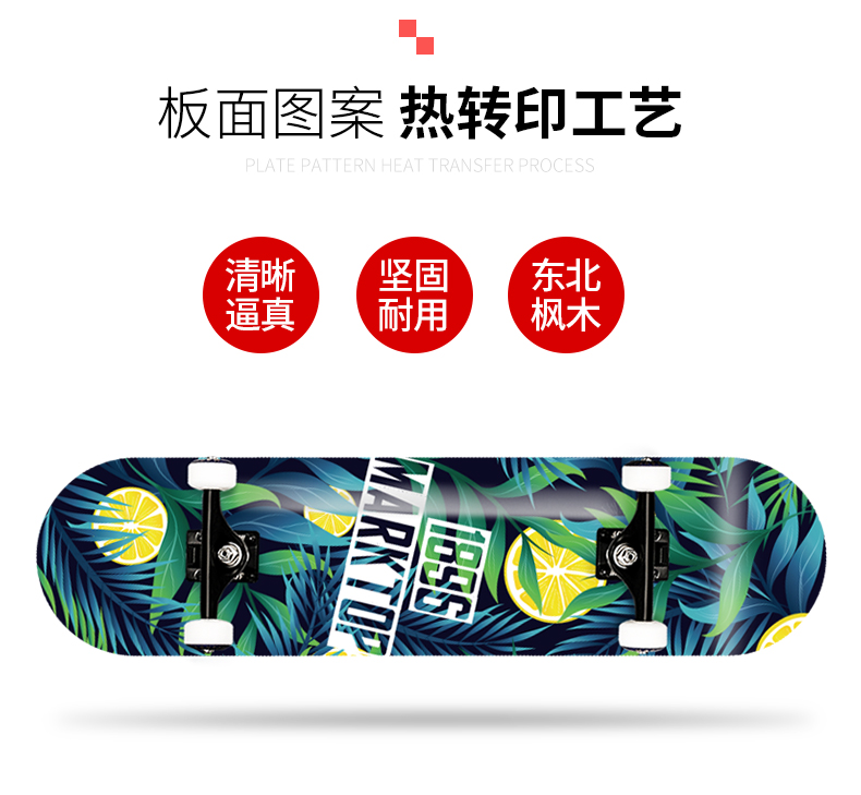 商品名称:玛克拓普(MARKTOP)专业枫木四轮滑板儿童成人刷街代步进阶公路双翘滑板柠檬草