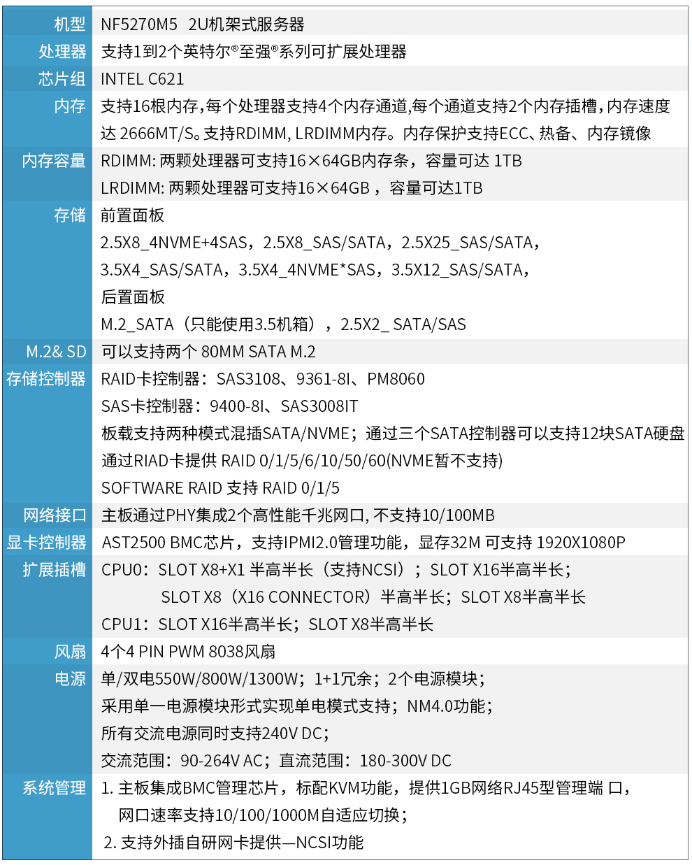 商品名称:浪潮(INSPUR)NF5270M5英信2U服务器机架式2颗4210/64G/1.2TSAS*2+480GSSD/千兆/8222/550W/导轨