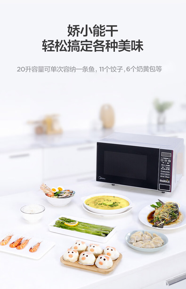 商品名称:美的(Midea)M1-L202B快捷微波炉平板加热一键启动多角度反射内胆20升杀菌黑色