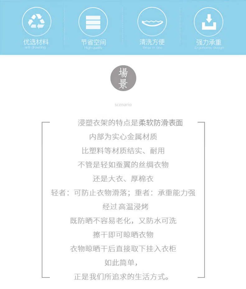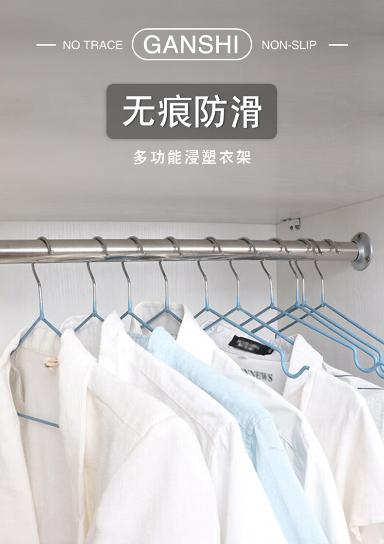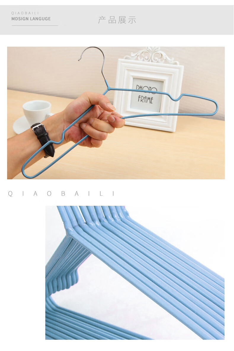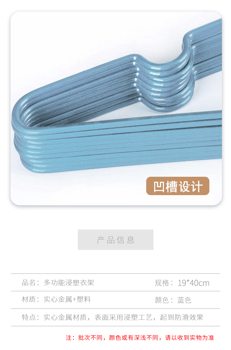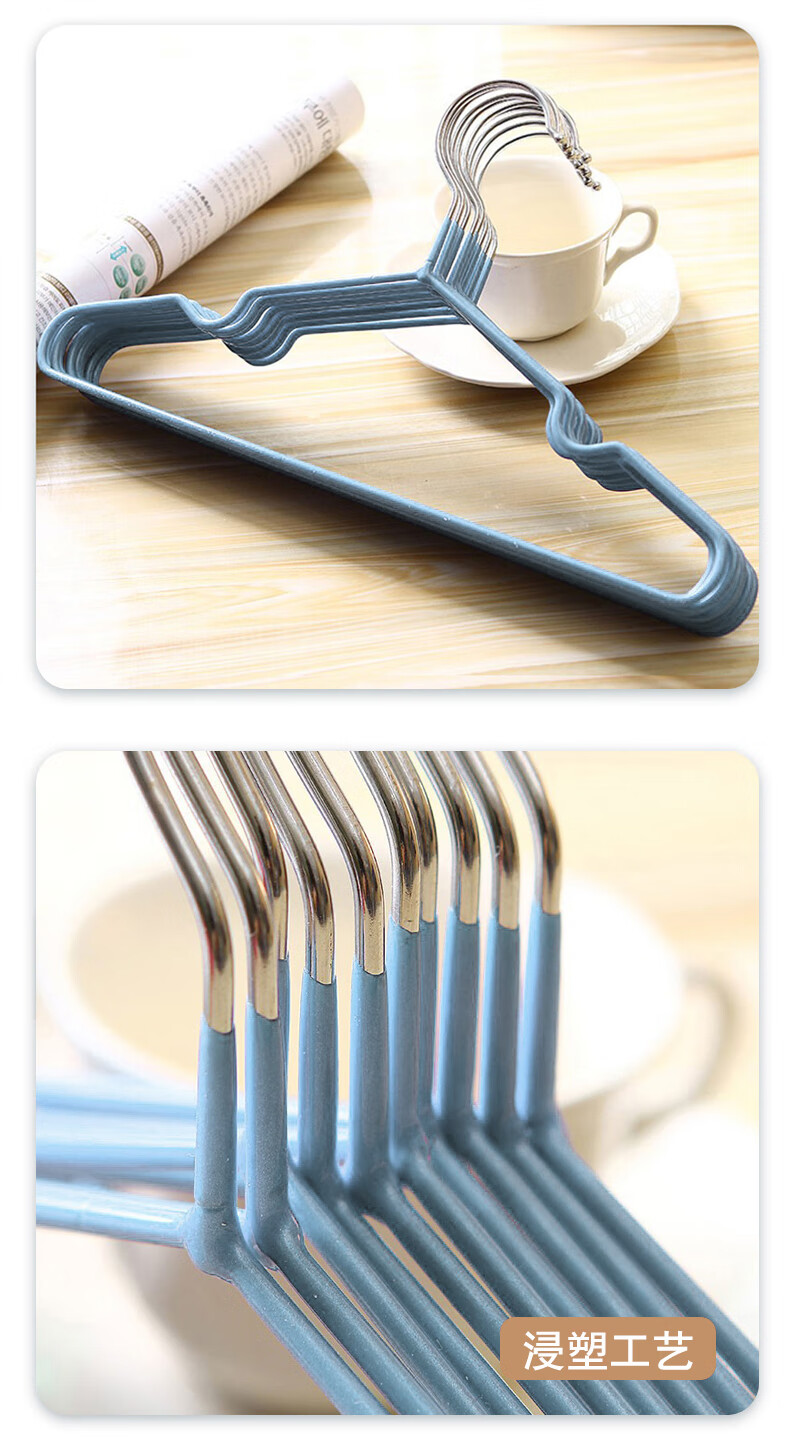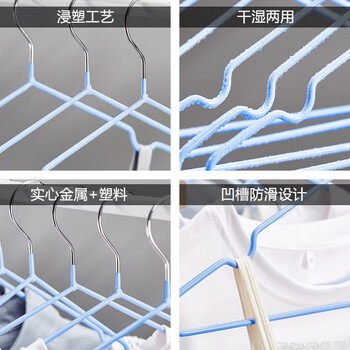 商品名称:京惠思创衣架 浸塑晾衣架 干湿两用成人儿童防滑凹槽衣服撑子加粗款优雅蓝 10只装