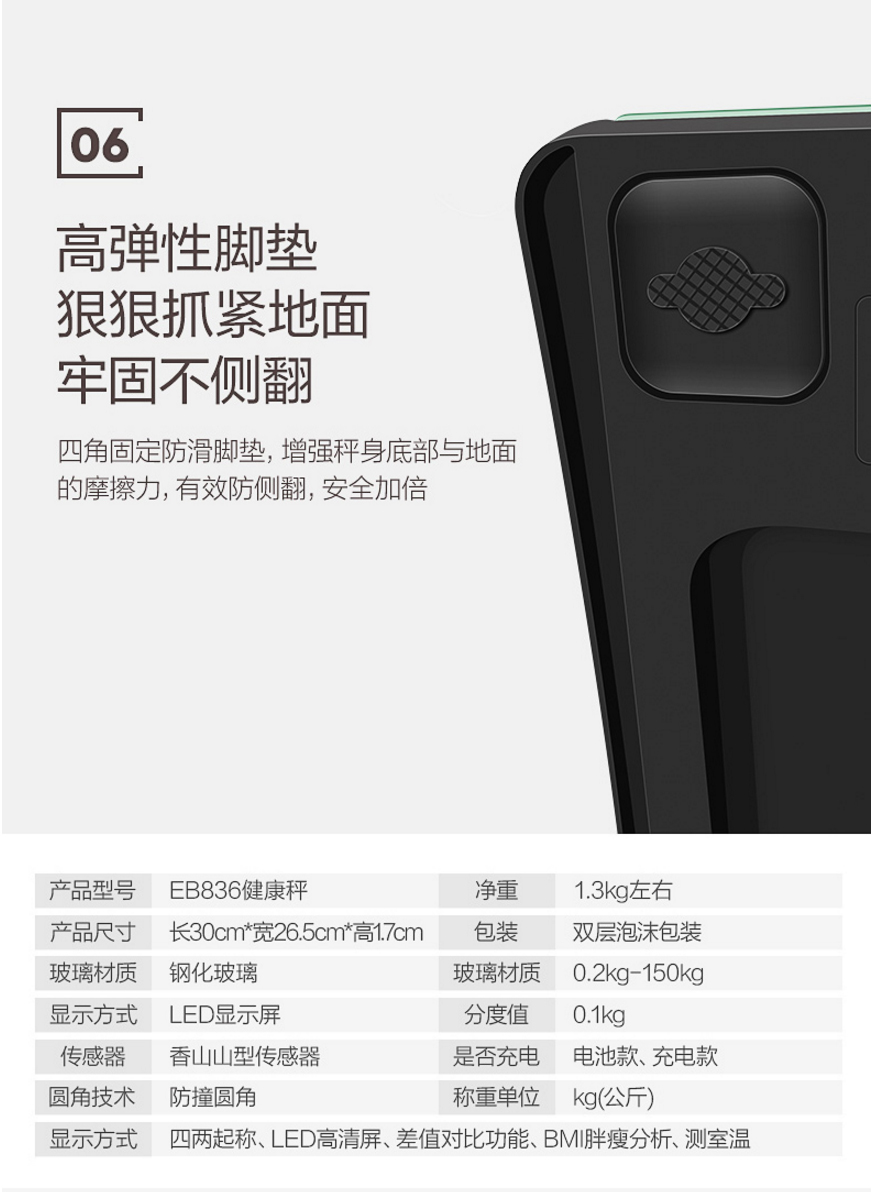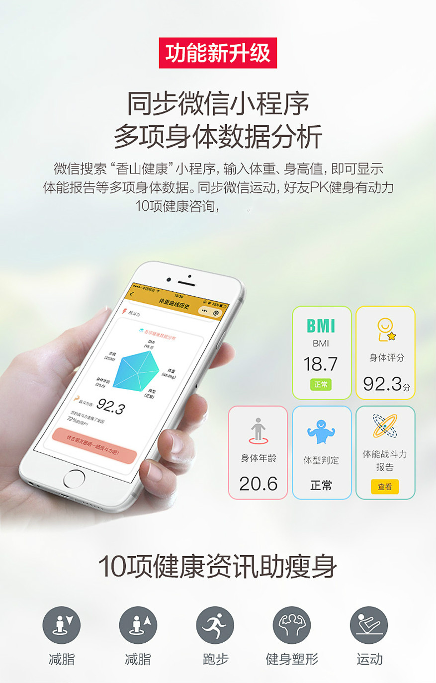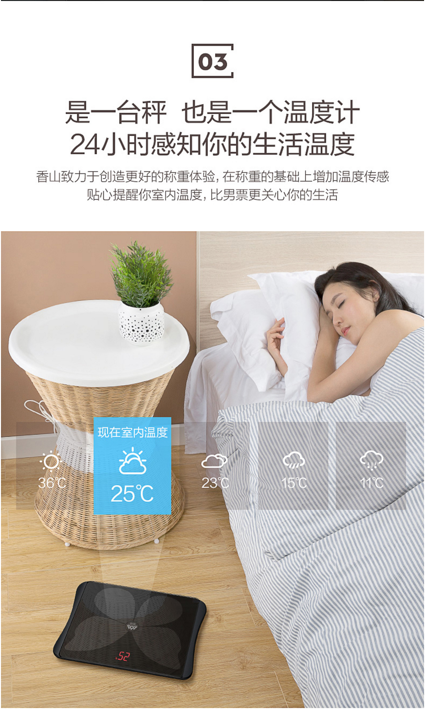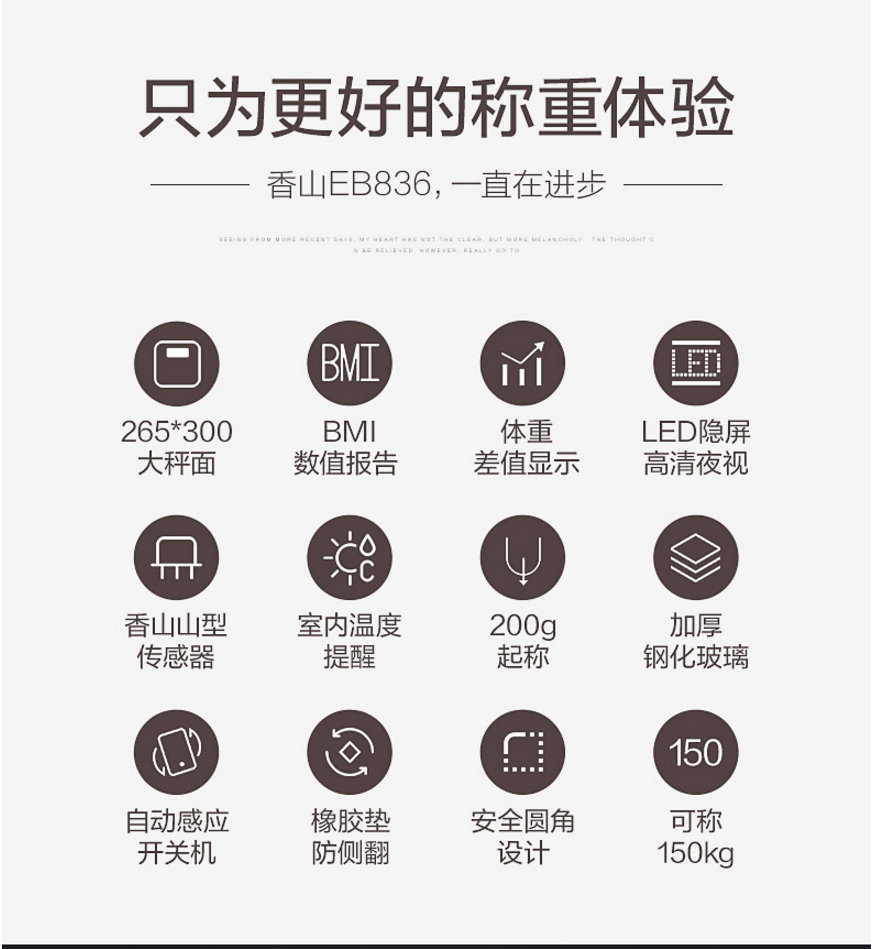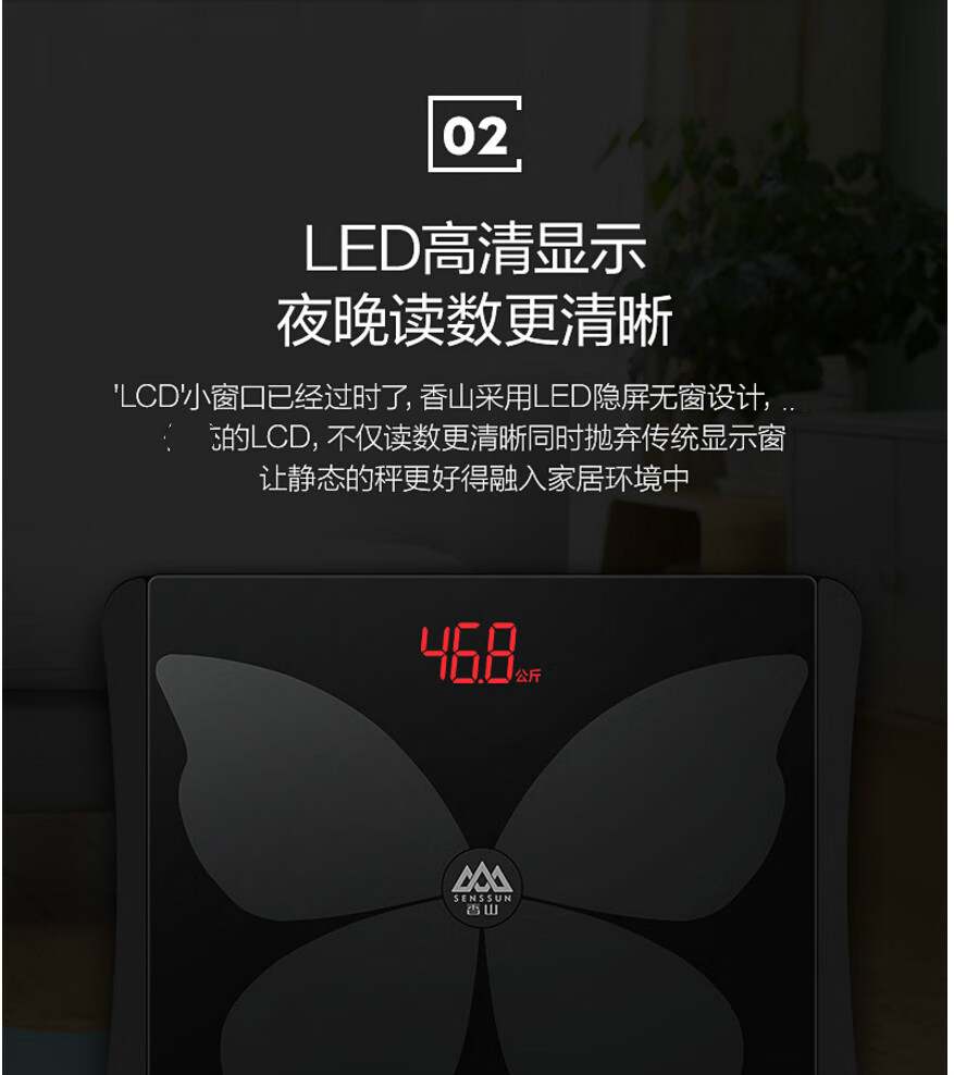 商品名称:香山电子秤称重人体秤精准家用计体重秤智能减肥新款EB9005L