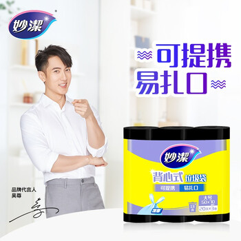 商品名称:妙洁 垃圾袋手提背心式加厚大号超值装3卷60只装 黑色办公家用 做好干湿垃圾分类