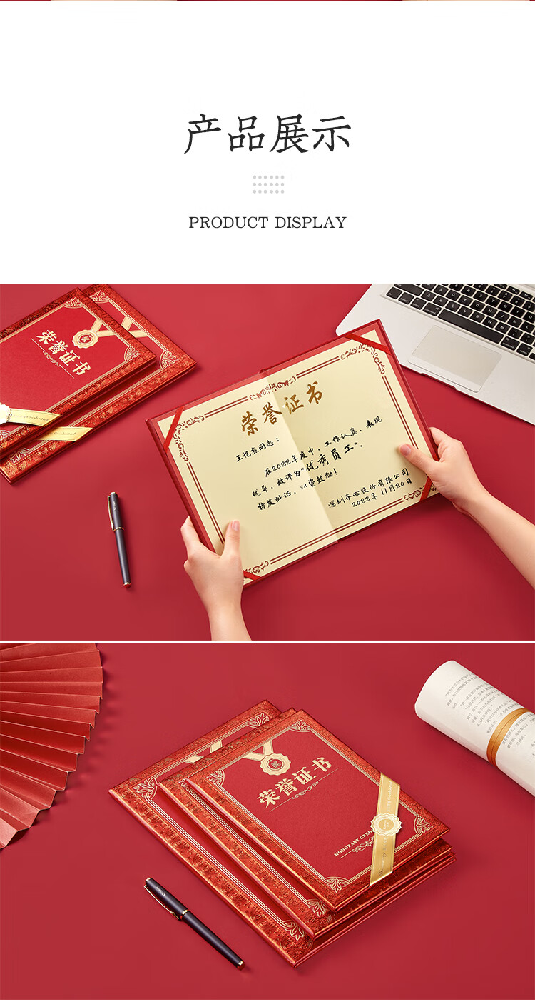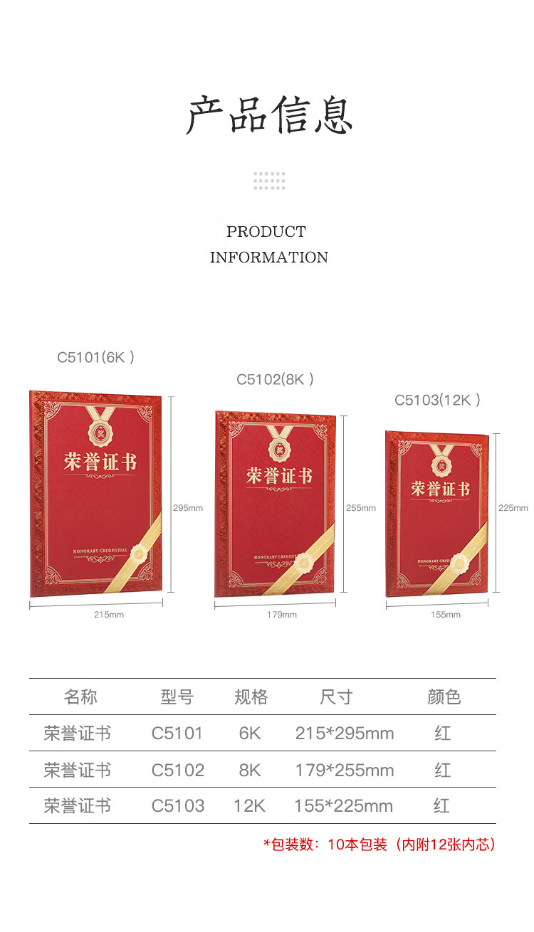 商品名称:齐心(Comix)荣誉证书12K/10本装附12页证书内芯 精致烫金颁奖表彰奖状 办公文具 C5103