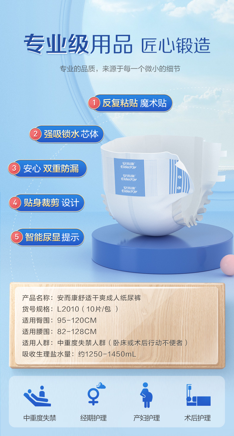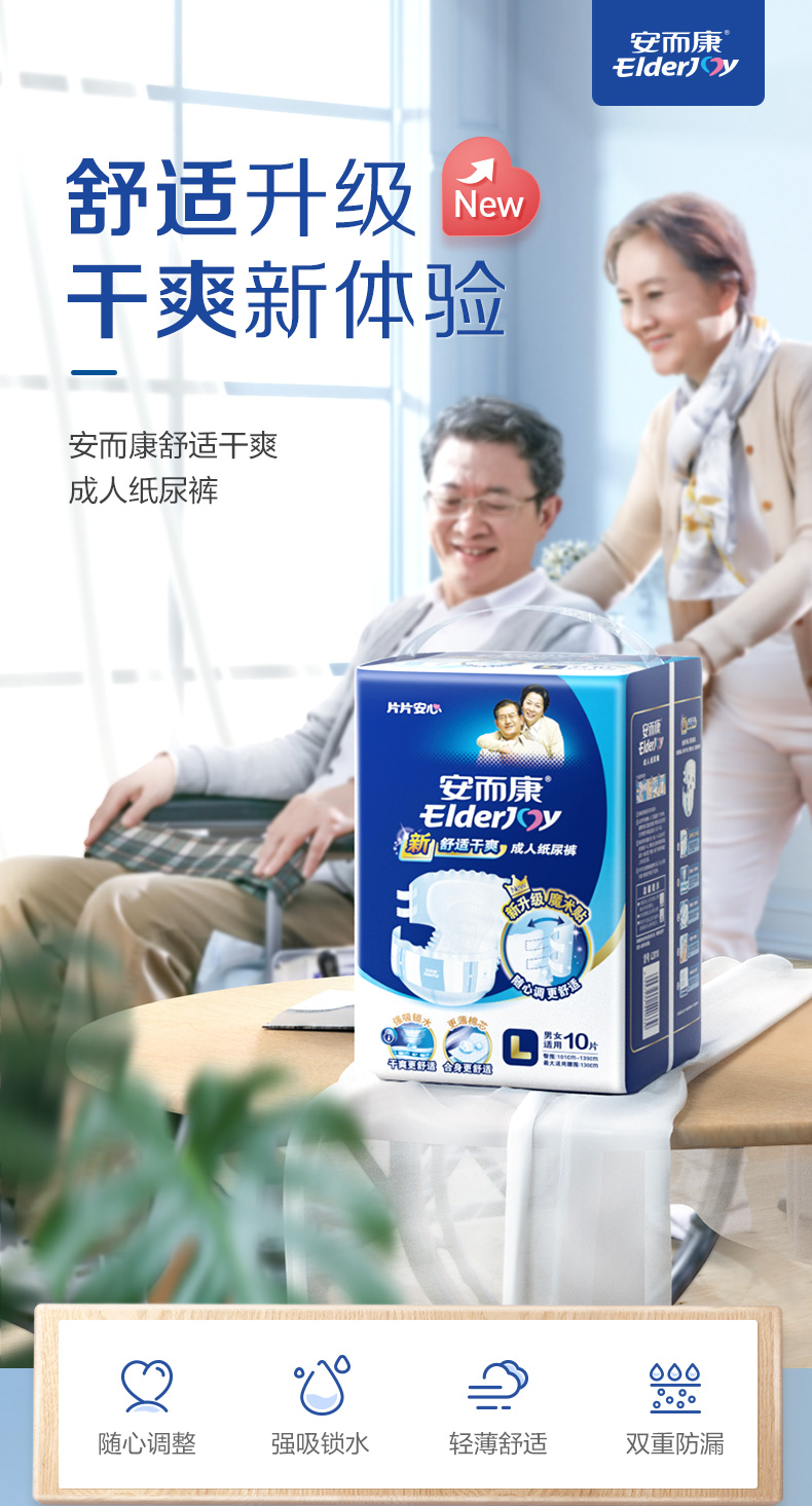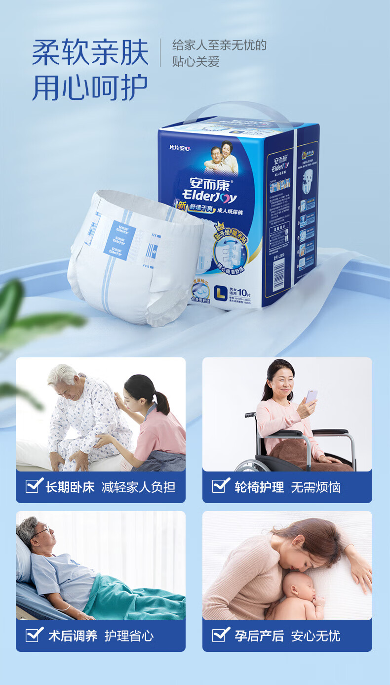 商品名称:安而康(Elderjoy)舒适干爽成人纸尿裤L10片 老人产妇尿不湿双芯防漏 臀围95-120cm