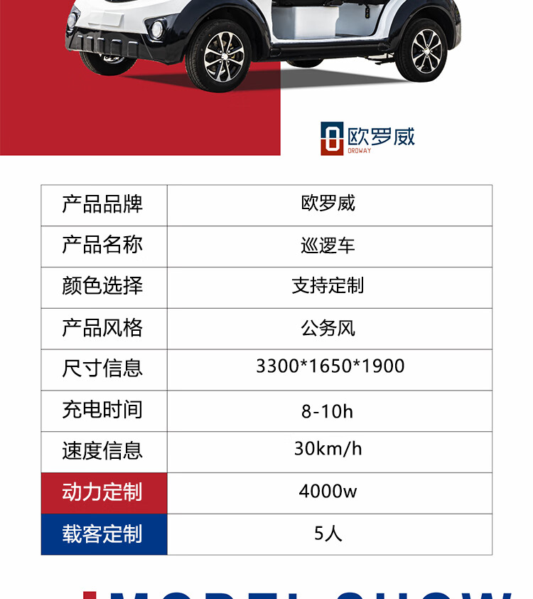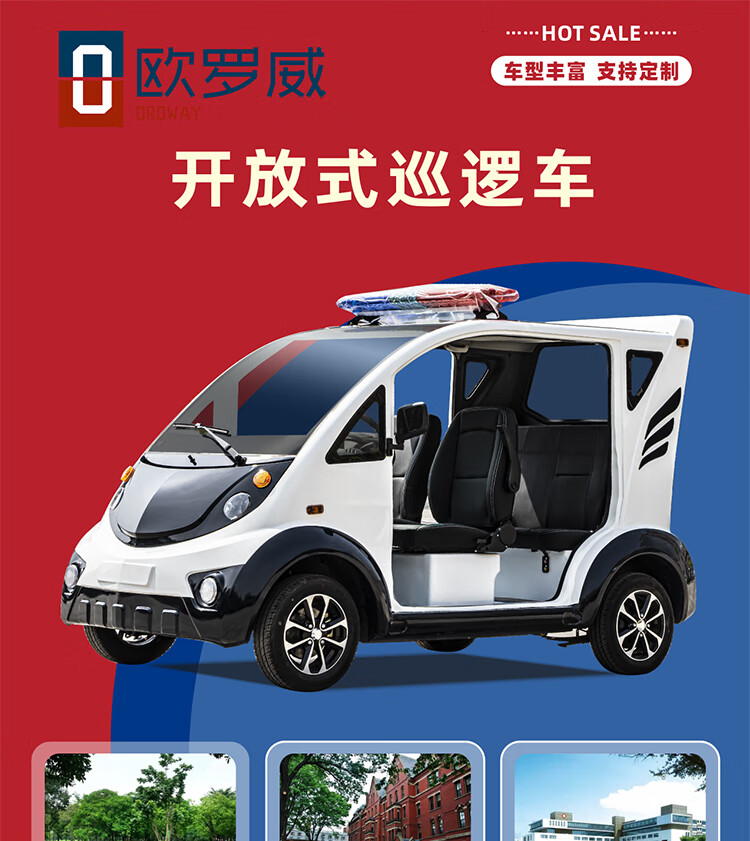 商品名称:欧罗威电动巡逻车四轮半封闭4-5座景区旅游学校园区机场物业保安治安巡查车 高配