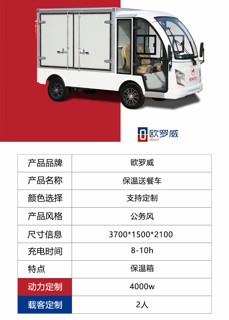 商品名称:欧罗威 电动厢式货车 皮卡转运车 双座巡逻斗车 四轮载人载货电瓶车 电动保温送餐车