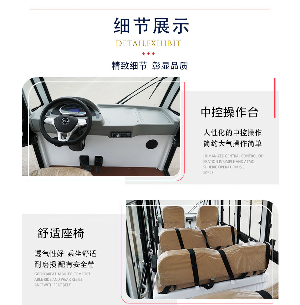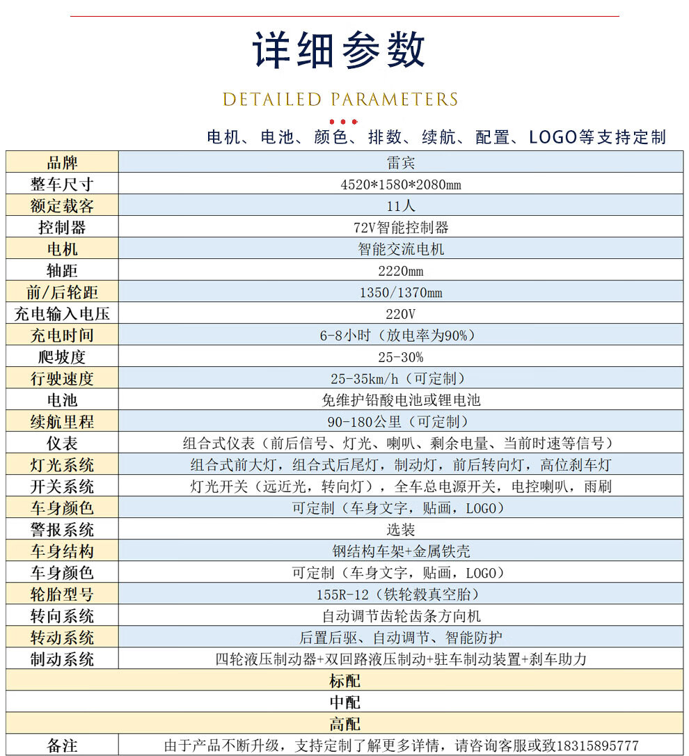 商品名称:雷宾 电动观光车四轮全封闭8-11座景区旅游校园酒店巡逻车 营区机场接待看房车摆渡游览车 标配