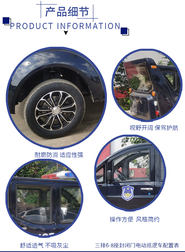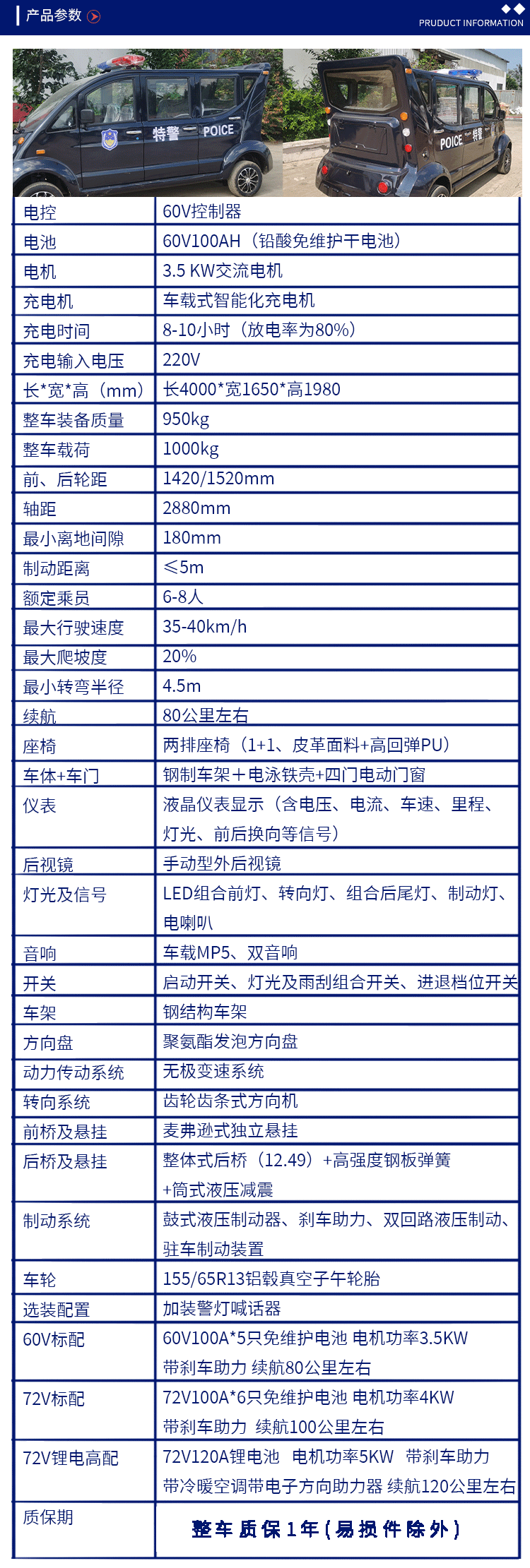 商品名称:鑫盛派 电动巡逻车三排6-8座封闭门 72V锂电高配
