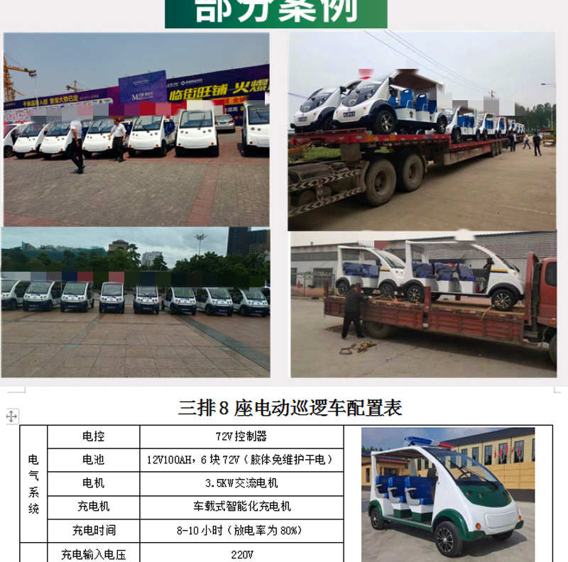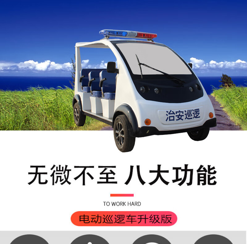 商品名称:FUQ三排8座巡逻车四轮电动场内转运车驳运摆渡车贵宾接待车观光车