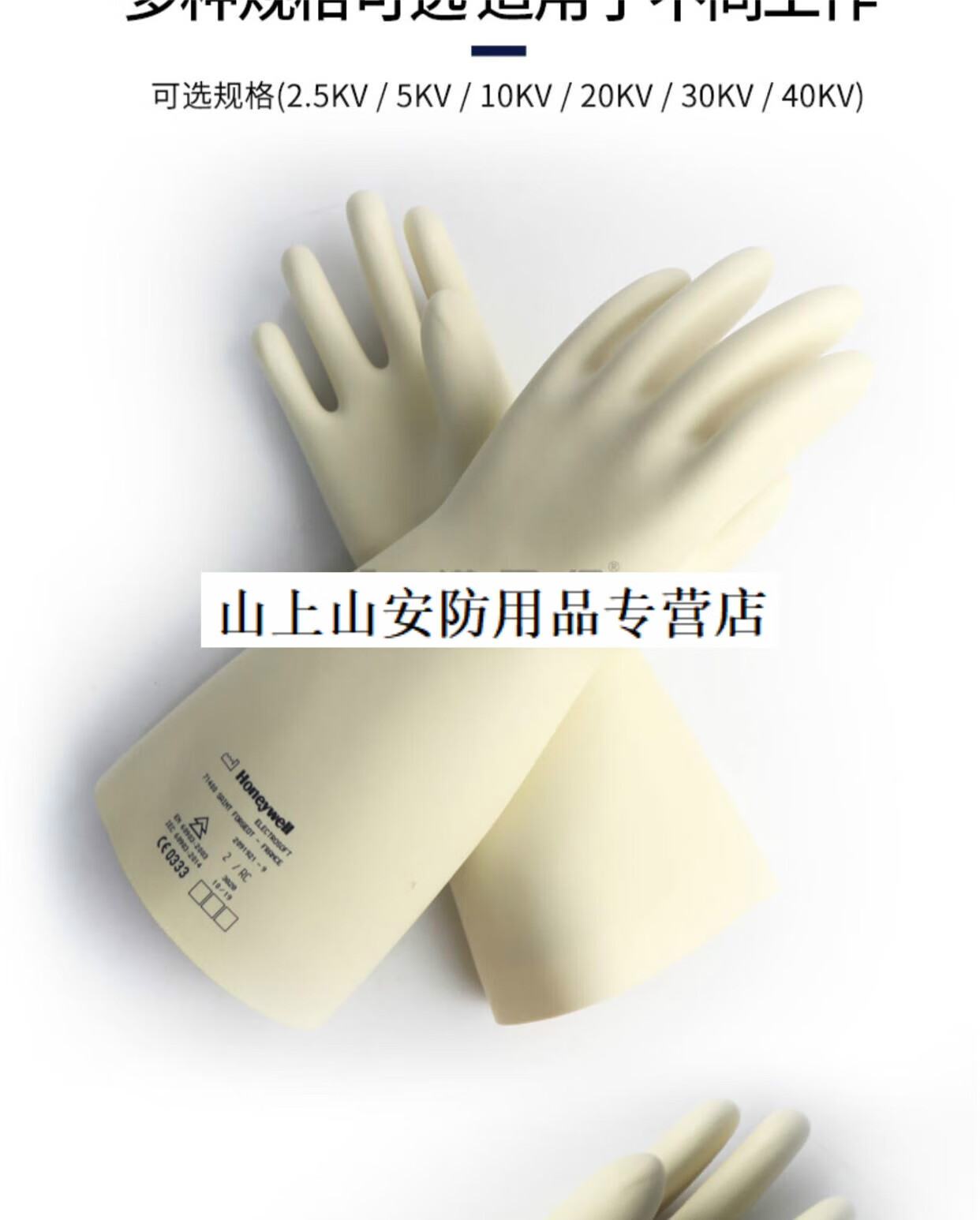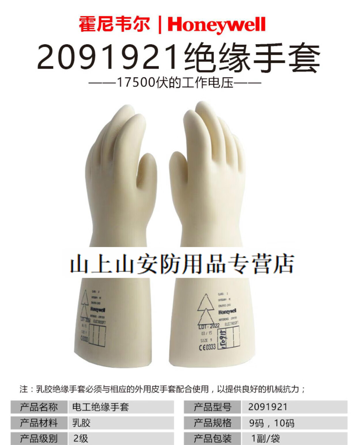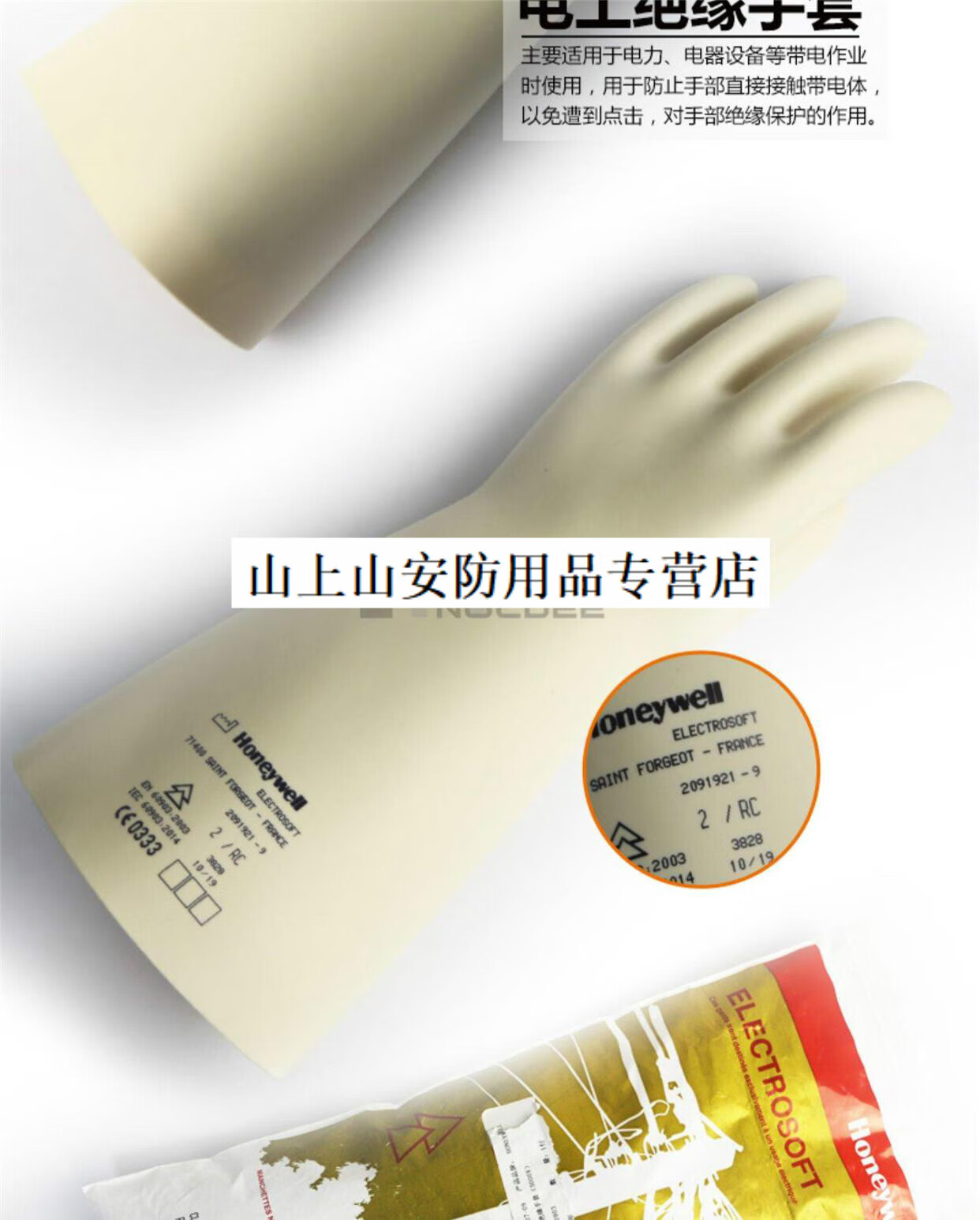 商品名称:霍尼韦尔honeywell2091921乳胶电工绝缘手套2级 20KV绝缘手套