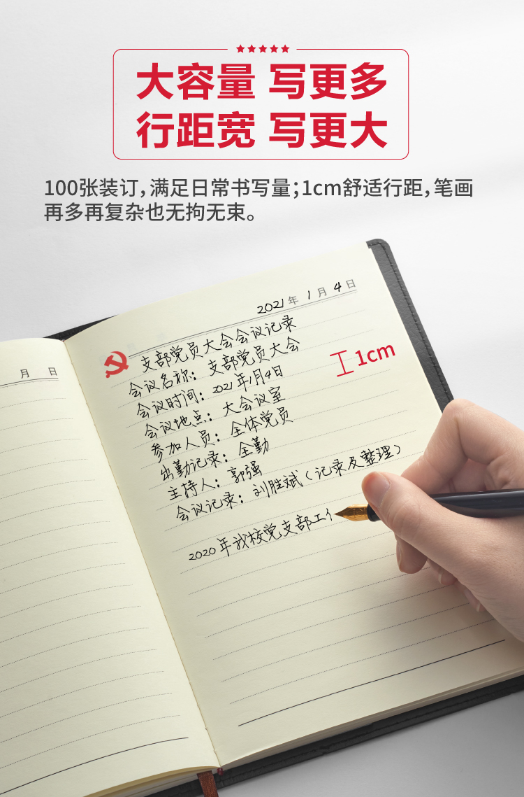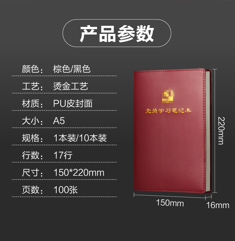商品名称:党员学习笔记本A5/100张1本装皮面商务笔记会议记录日记本红棕色