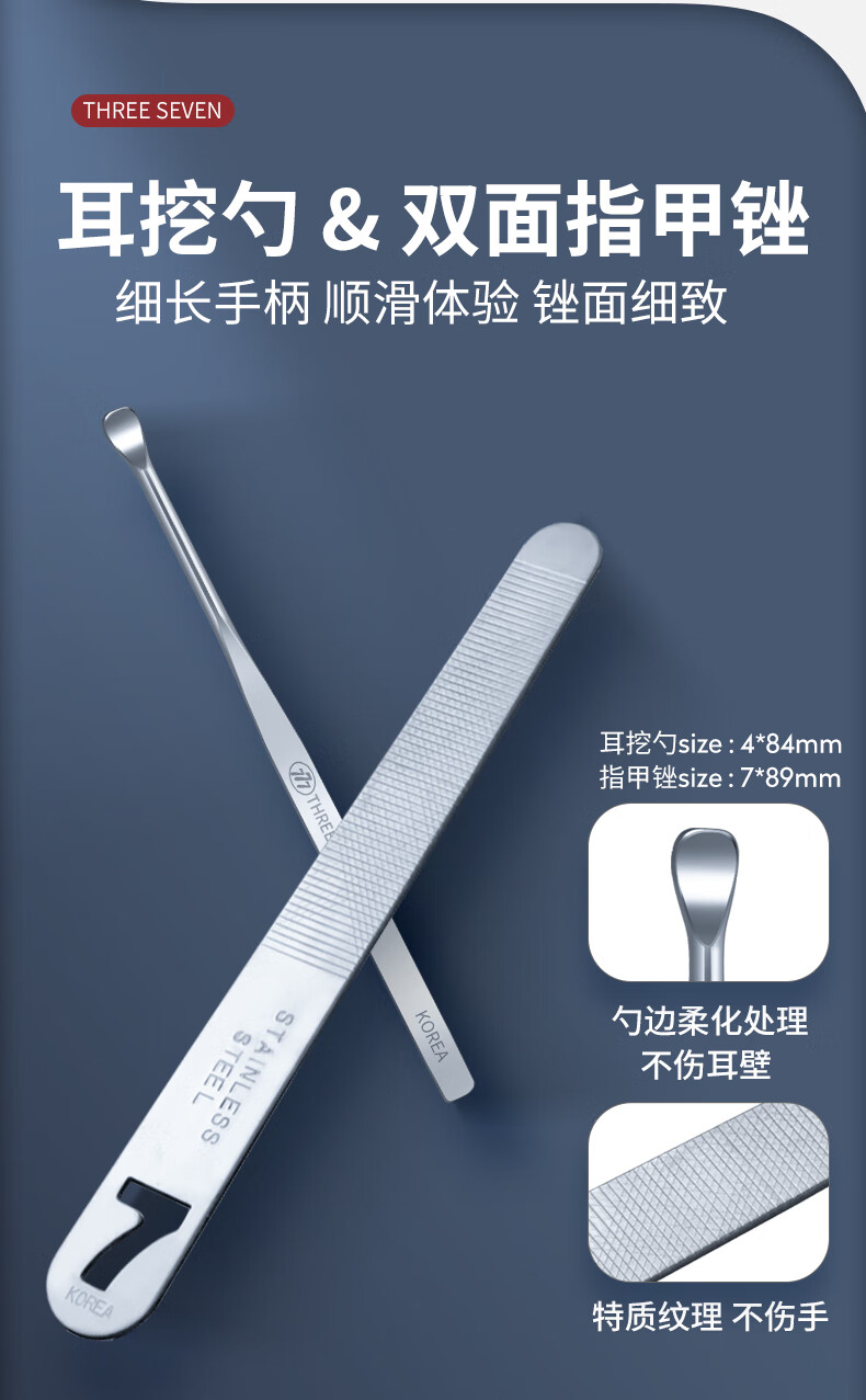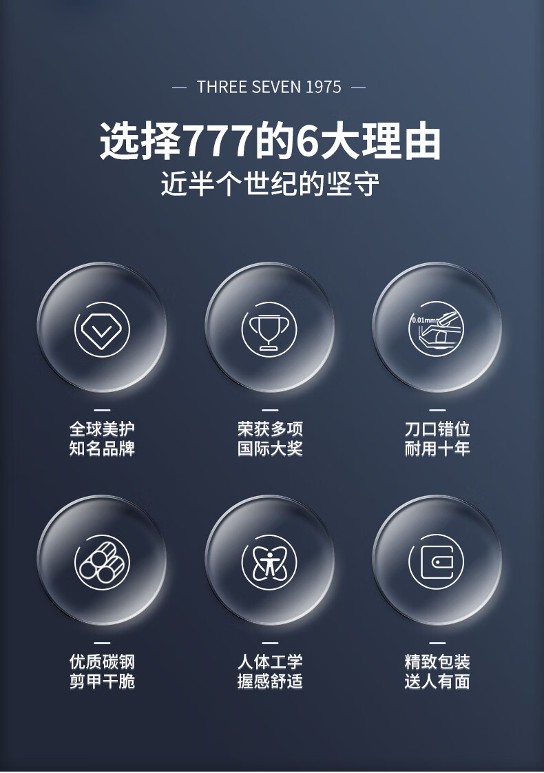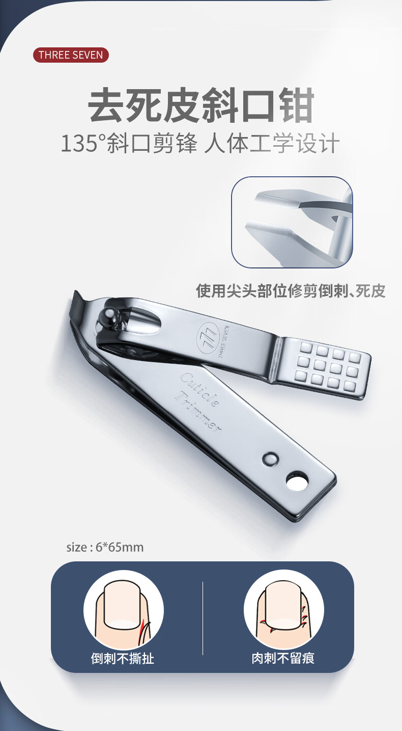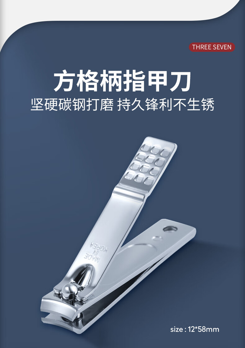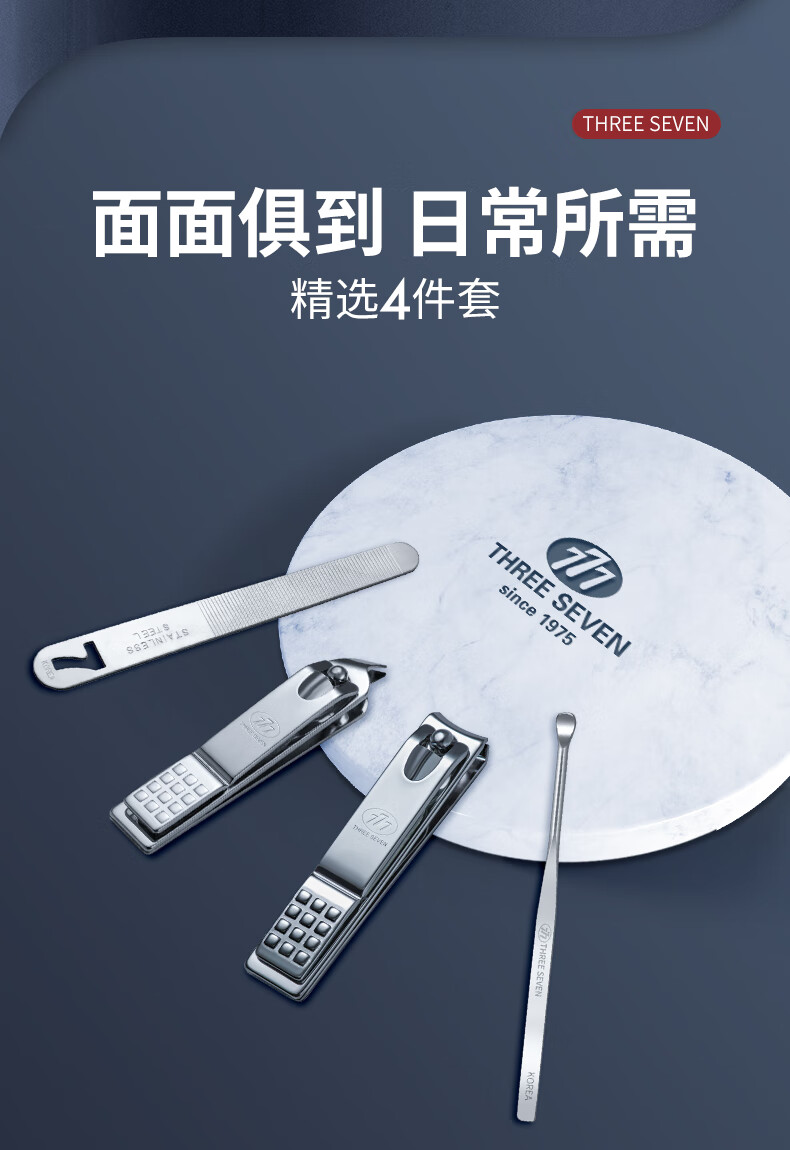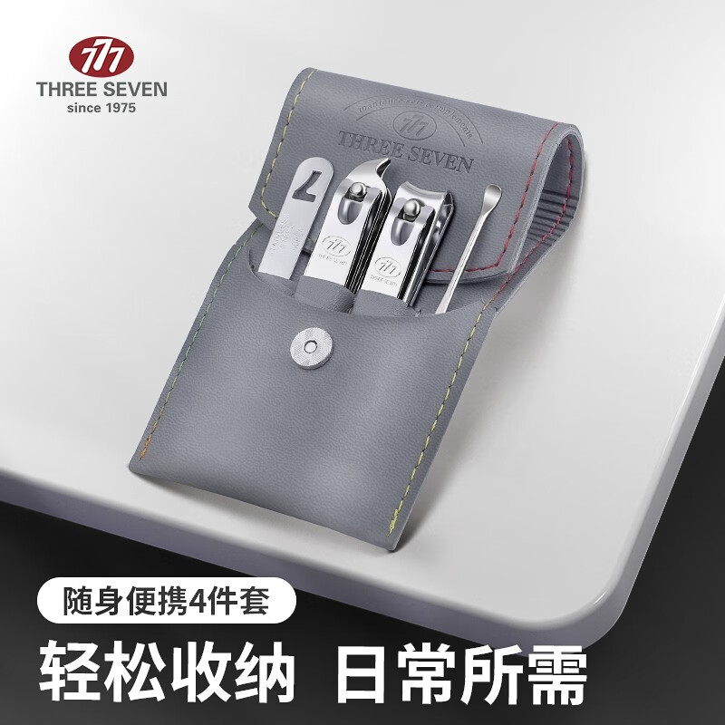 商品名称:777(THREE SEVEN)指甲刀套装 耳挖 指甲锉 去死皮 中平斜口剪 进口碳钢便携装4件套NTS-8002灰色