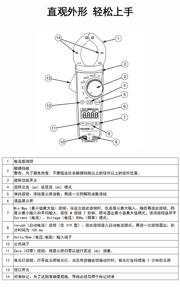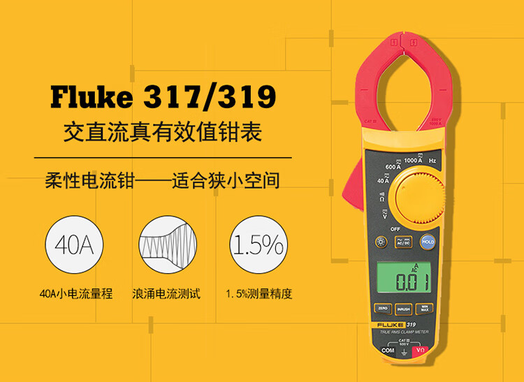 商品名称:福禄克(FLUKE) 319 真有效值交直流数字电流表 1000A 交流/直流 FLUKE-319 CD