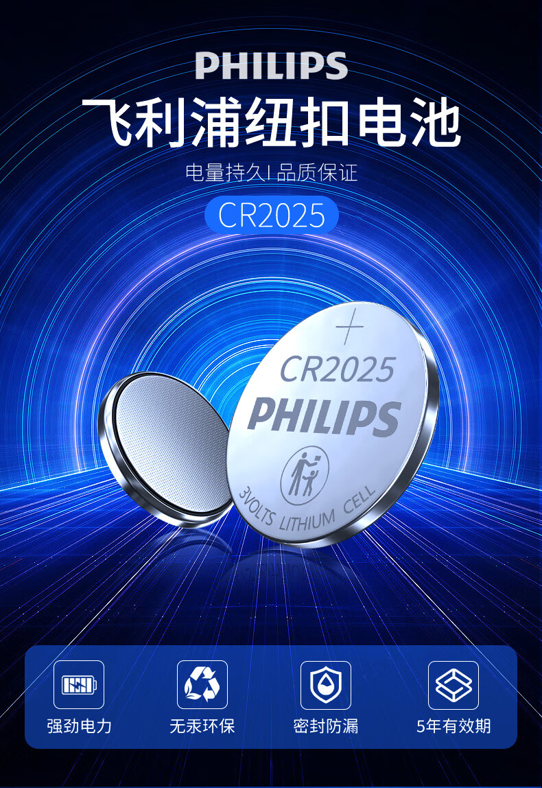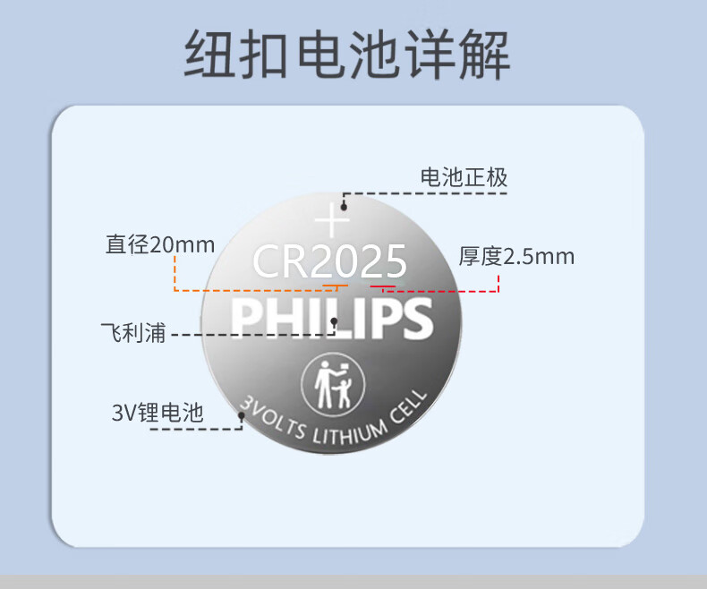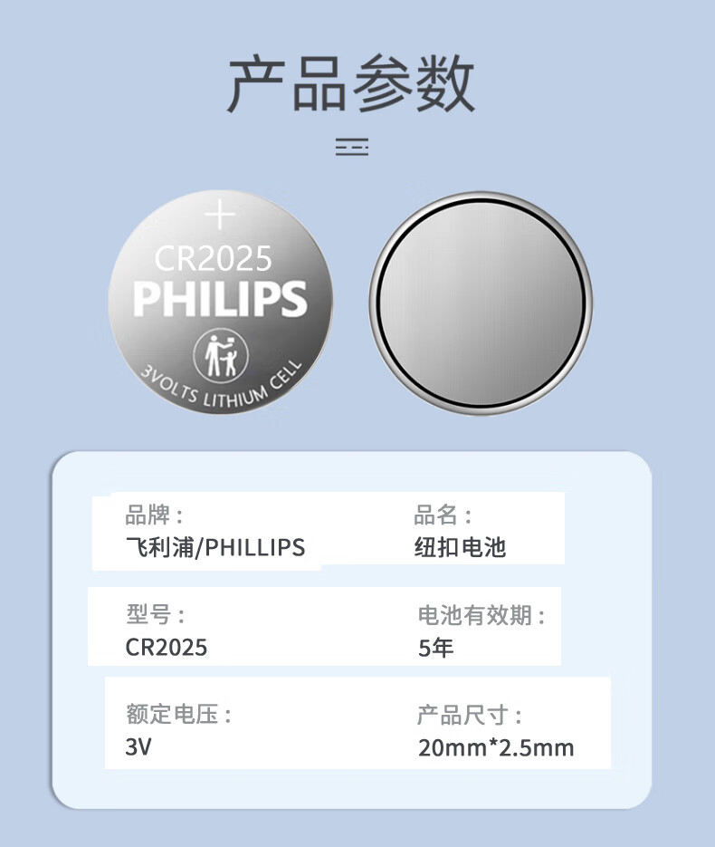 商品名称:飞利浦(PHILIPS)CR2025纽扣电池5粒3V 20粒