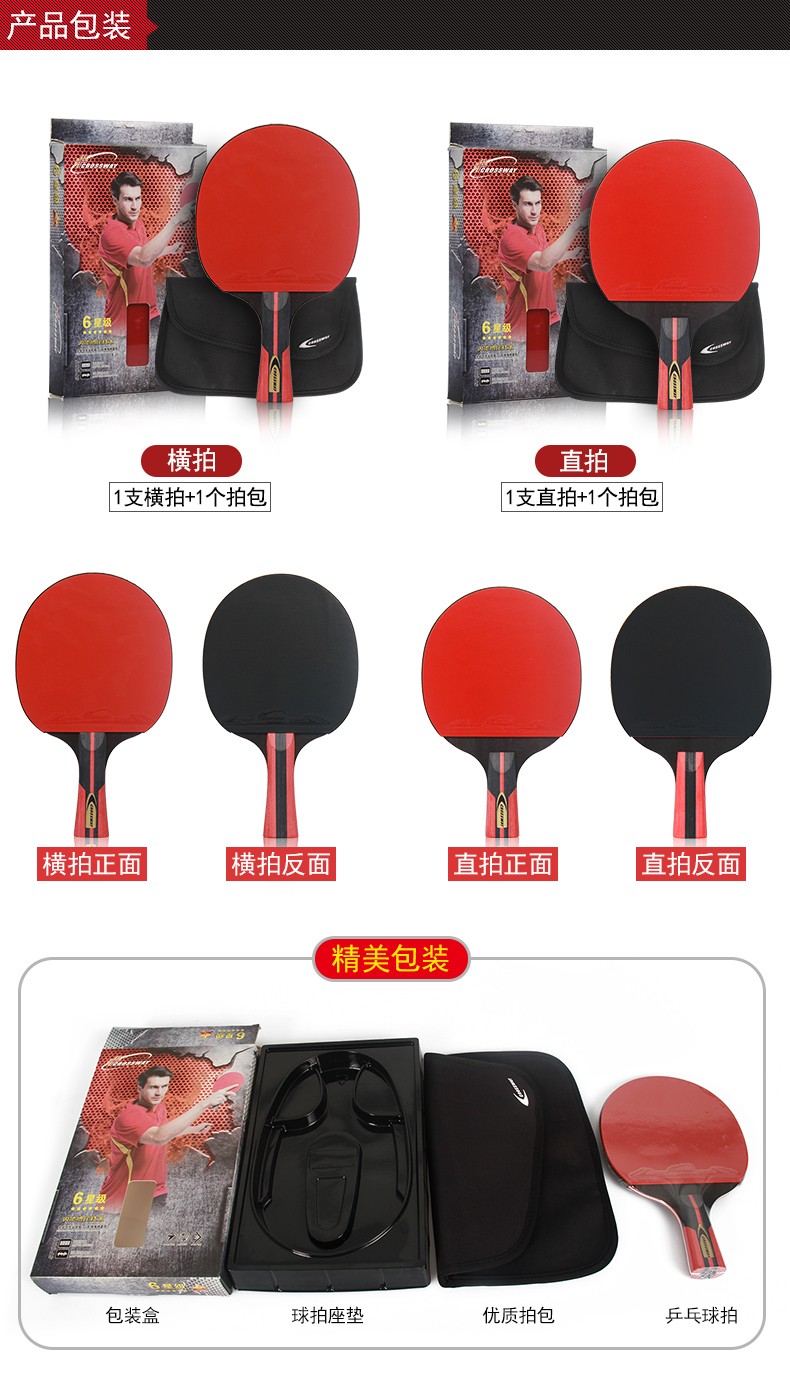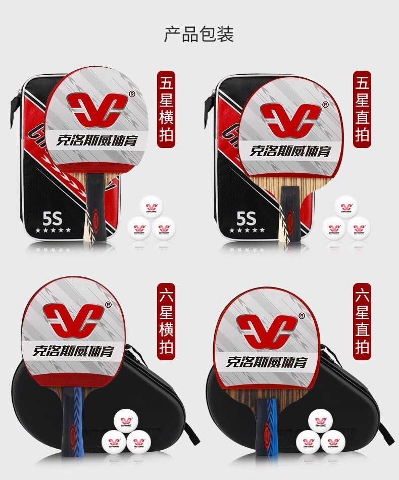 商品名称:克洛斯威(CROSSWAY)乒乓球拍六星双面反胶业余中高级攻守兼备专业比赛训练【标准三星2支装】横拍/送3个球