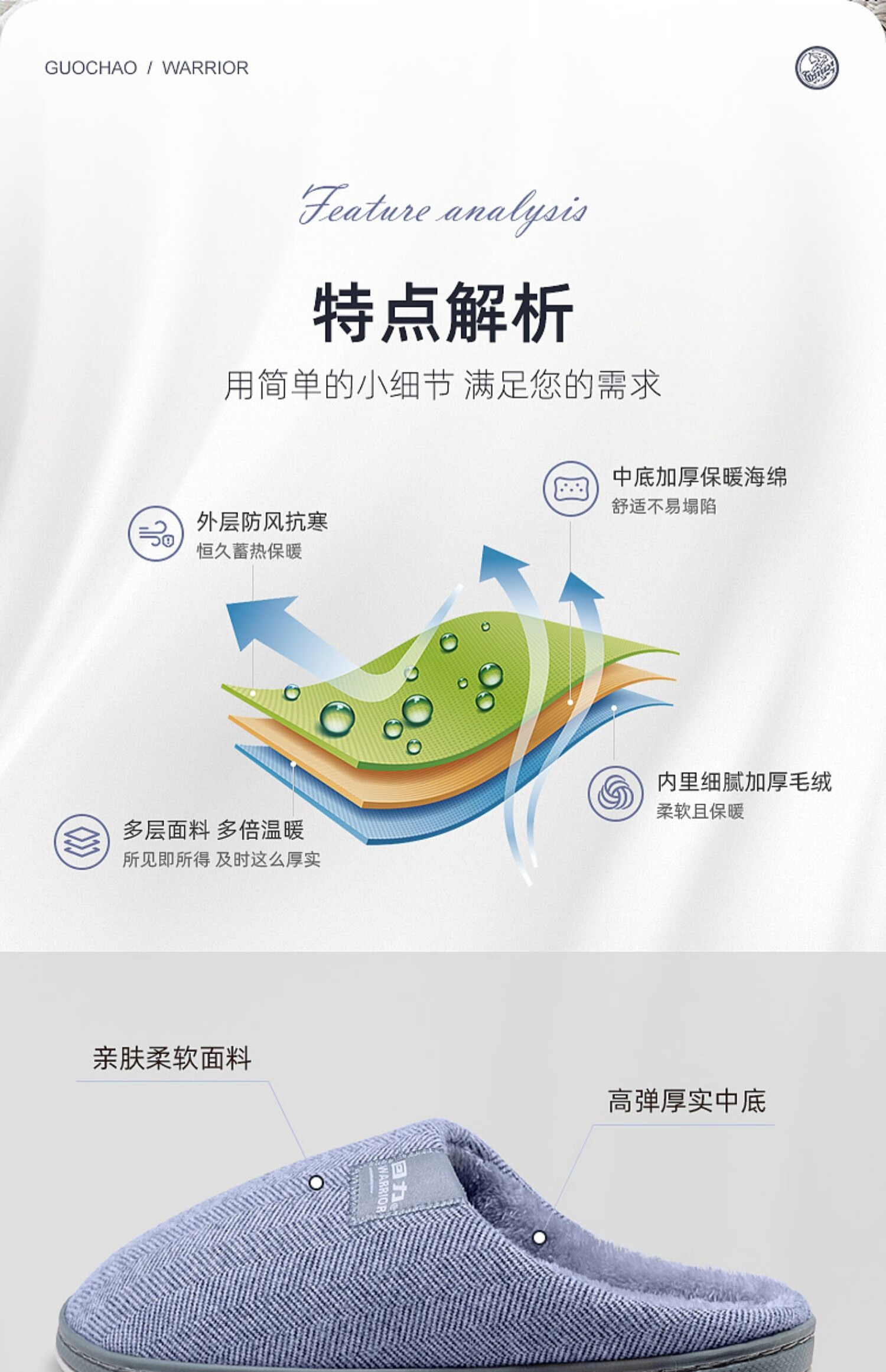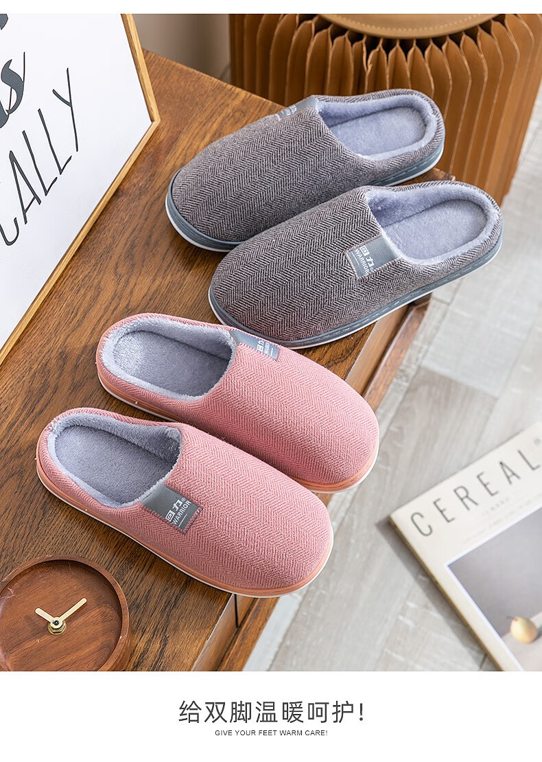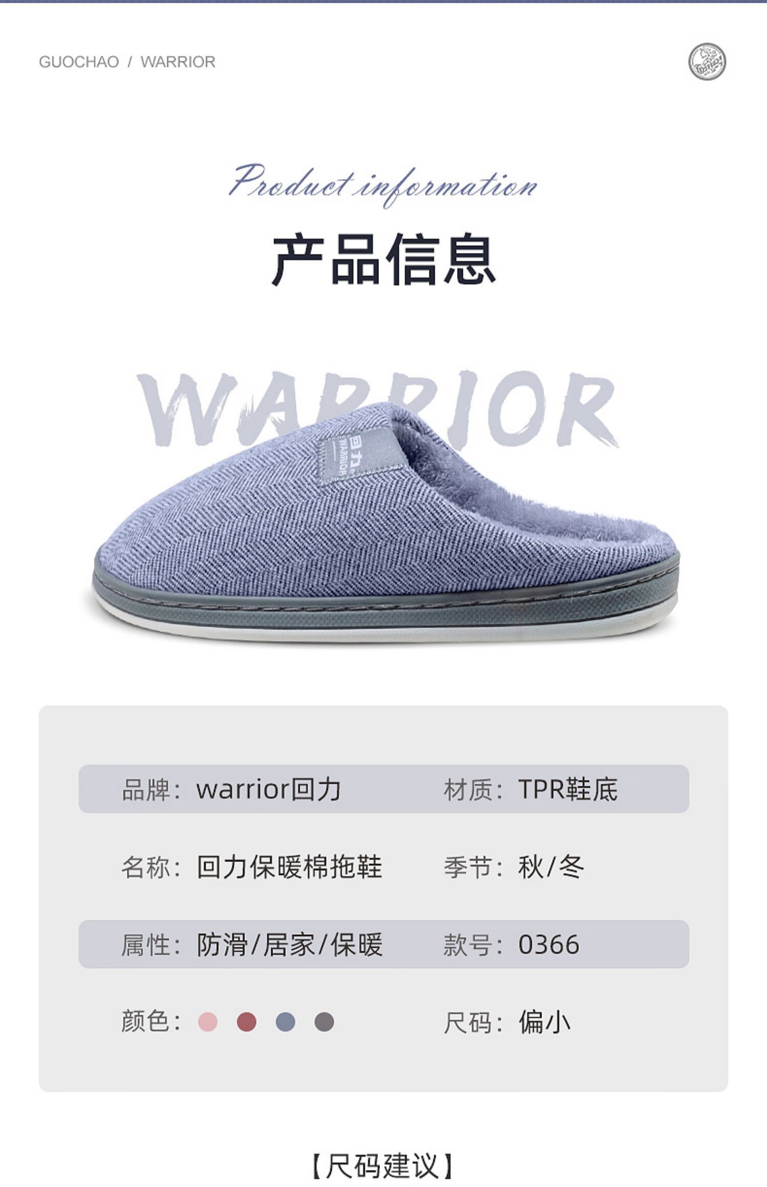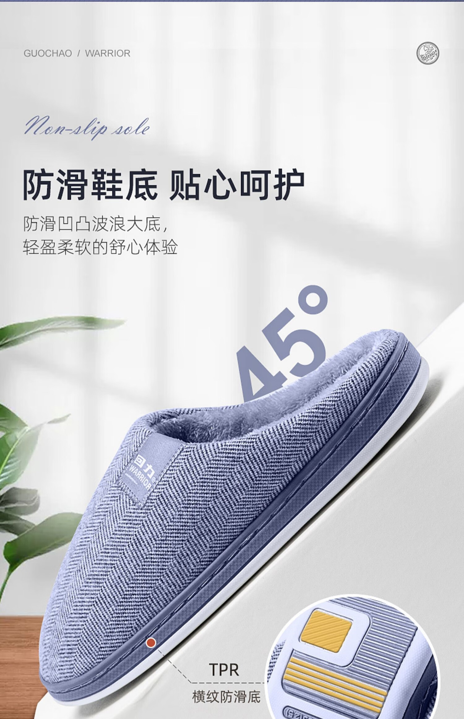 商品名称:回力保暖棉拖鞋男秋冬家用室内防滑毛绒2021年新款软底情侣女居家