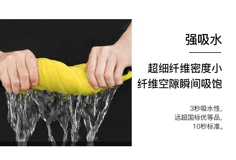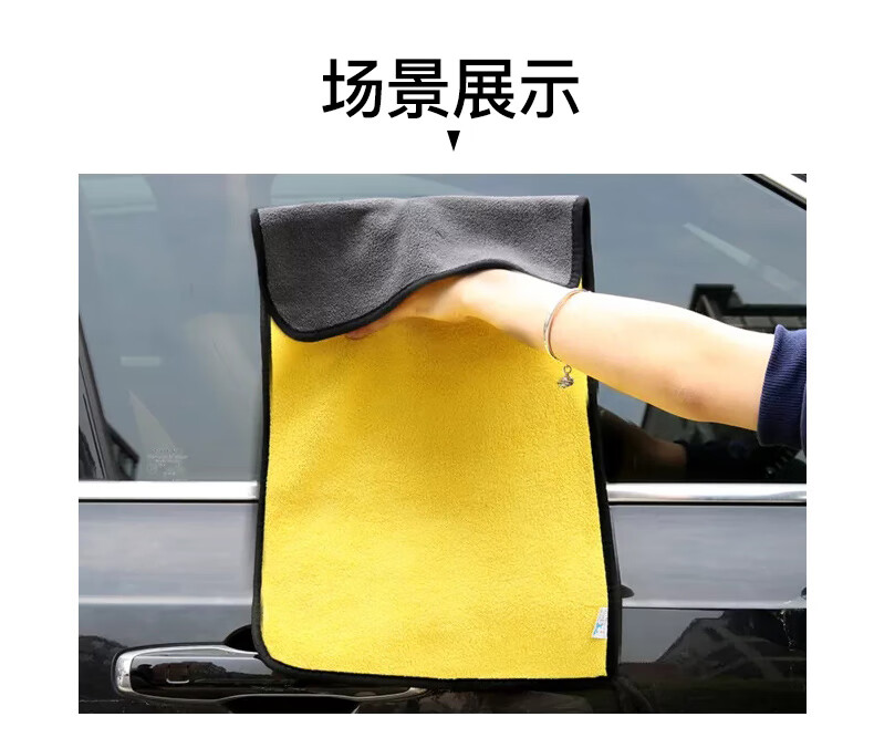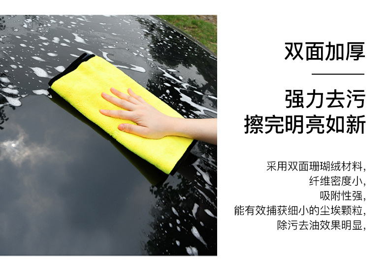 商品名称:鸿赞 洗车毛巾擦车巾无痕大号汽车毛巾超吸水不留痕双面加厚珊瑚绒黄色30*60cm*2条车家两用