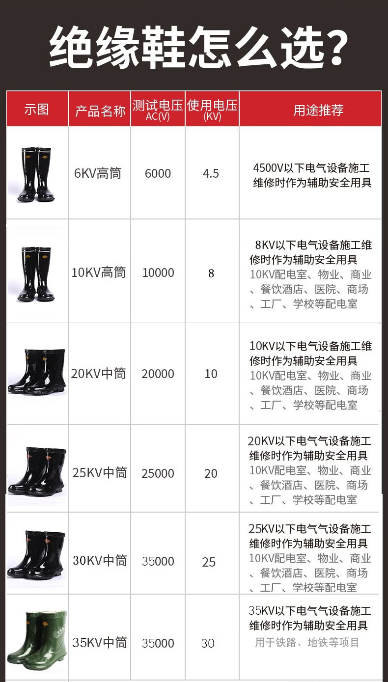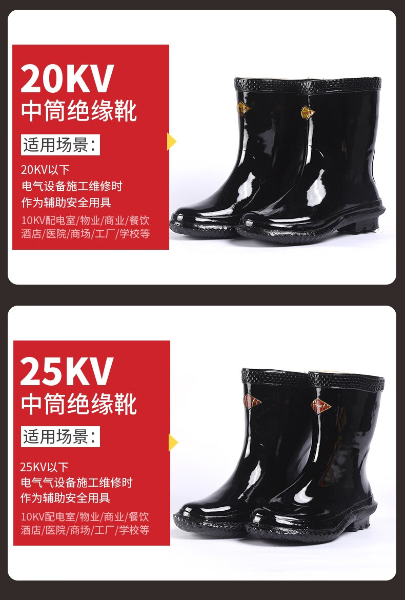 商品名称:电工绝缘靴男橡胶防电防水中高筒电力高压绝缘雨鞋10KV绝缘靴+10KV绝缘手套42