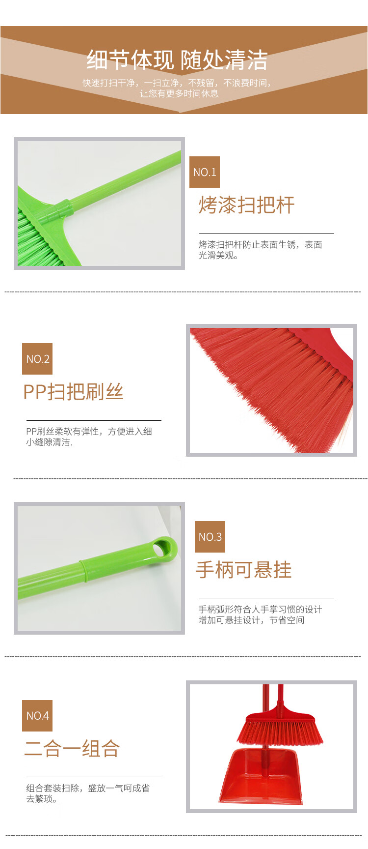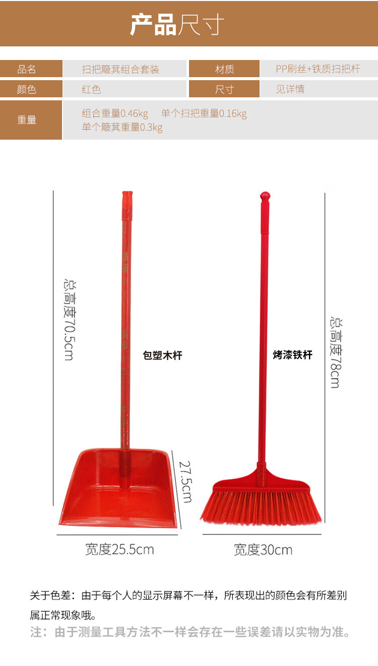 商品名称:兰诗LAUTEE WYQ0547 扫把簸箕户外扫马路庭院环卫扫帚垃圾铲 红色扫把套装