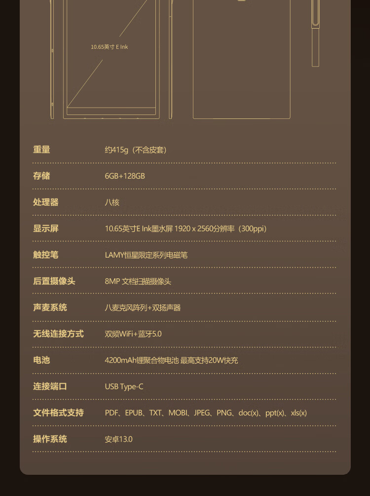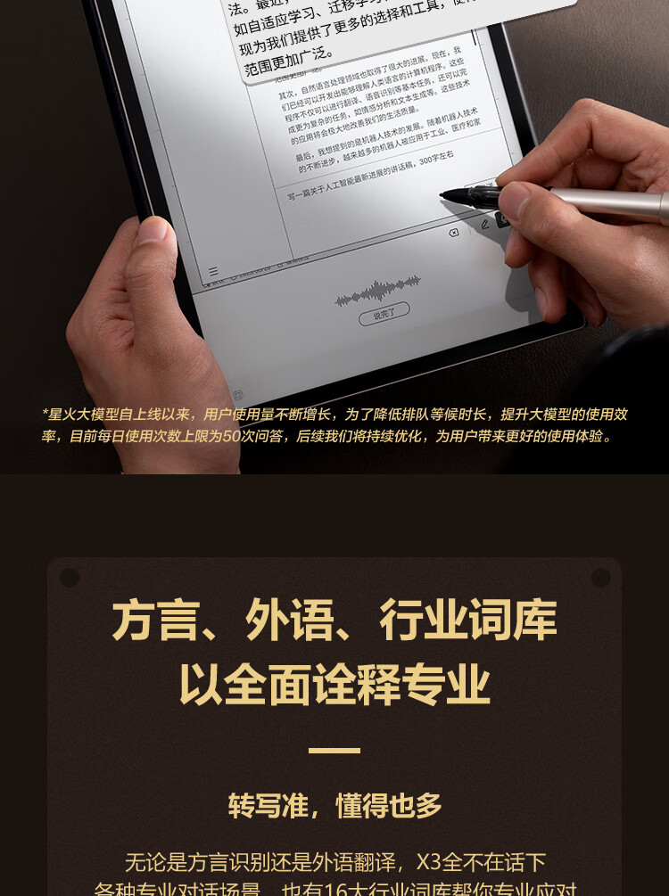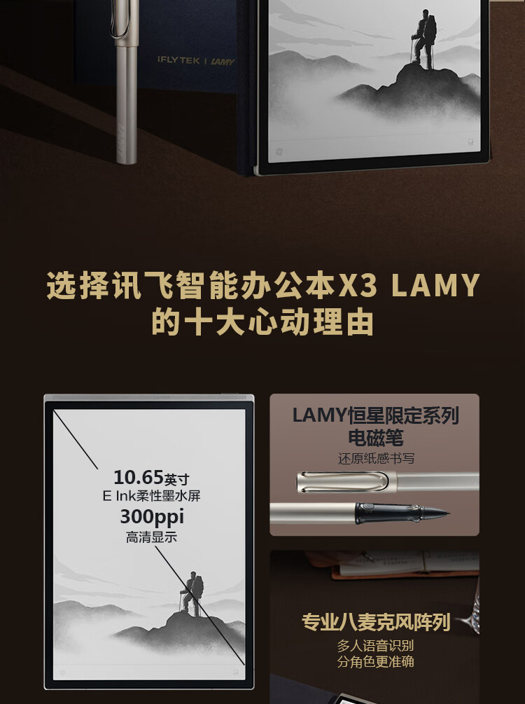 商品名称:科大讯飞智能办公本X3 LAMY联名款 10.65英寸搭载讯飞星火认知大模型 语音转写电子书阅读器 墨水屏电纸书