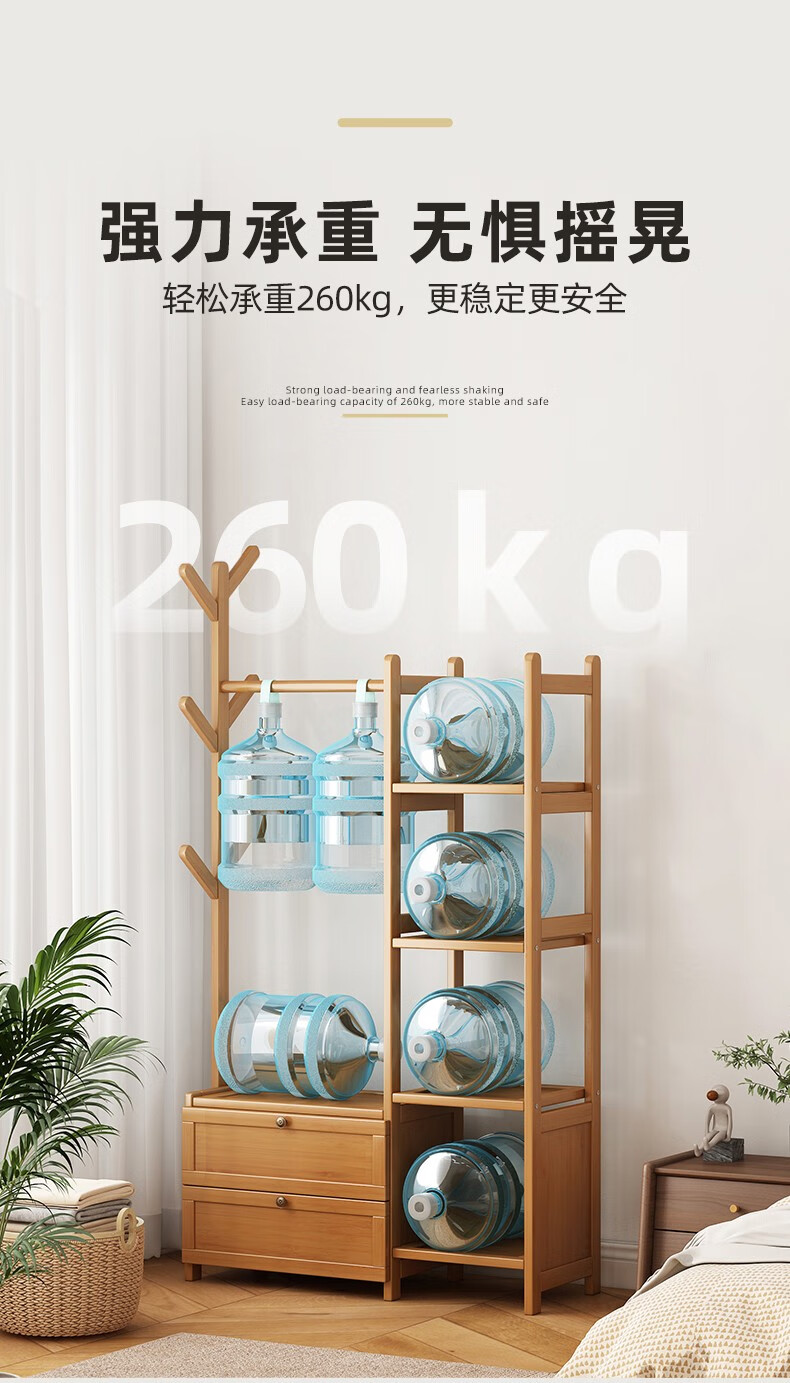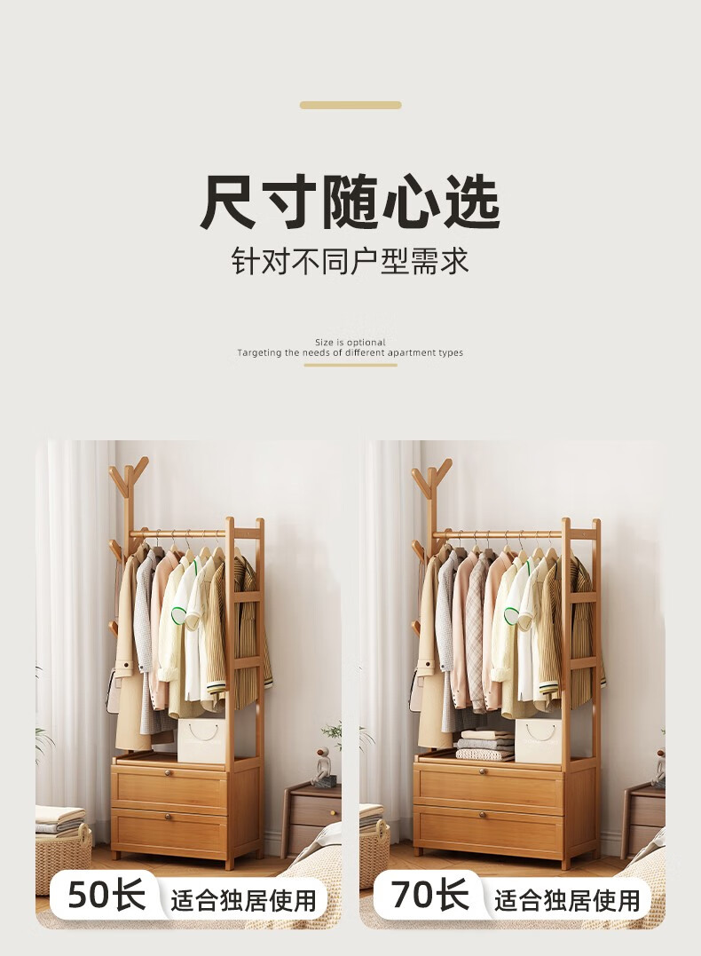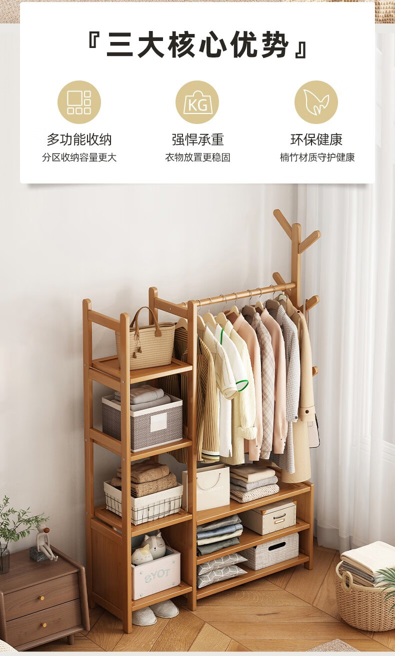 商品名称:衣帽架家用挂衣架卧室多功能室内一体落地收纳架置物架可移动架子 原木色-100宽【带门防尘款】
