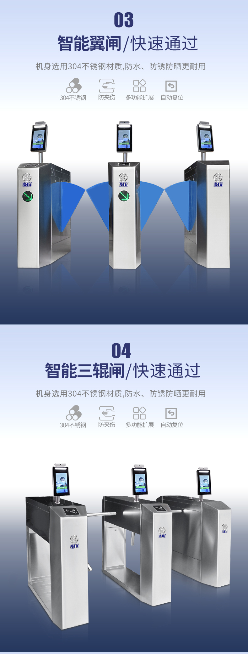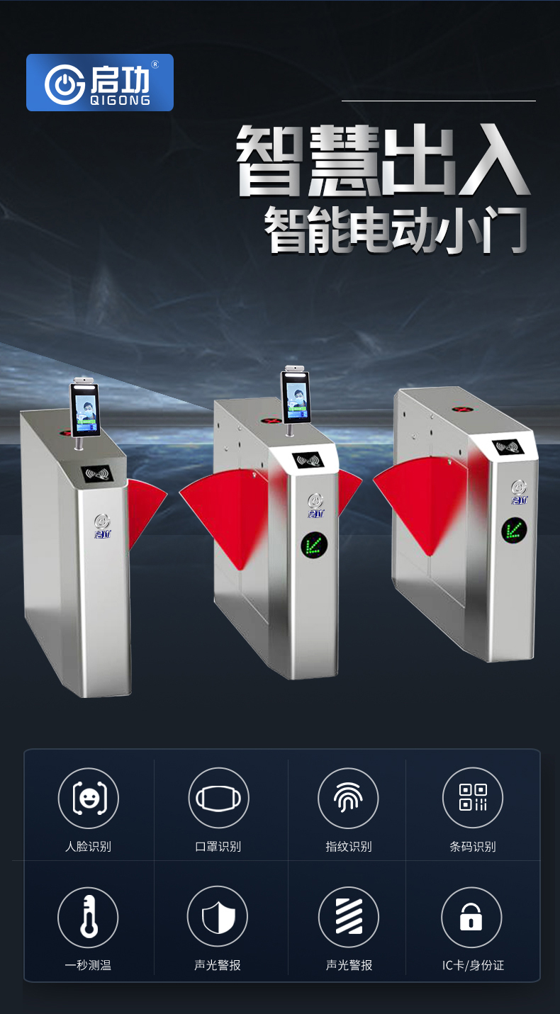 商品名称:启功单机芯摆闸一台单芯摆闸人脸识别一体机QG-RXDZ8980