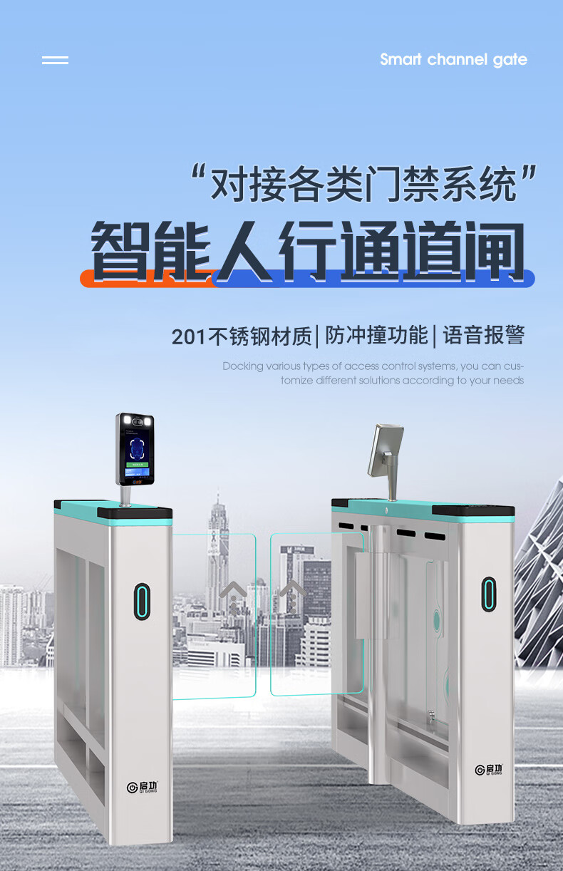 商品名称:启功人行通道闸请销假系统局域网系统人脸识别门禁系统速通闸QG-SYM2102S