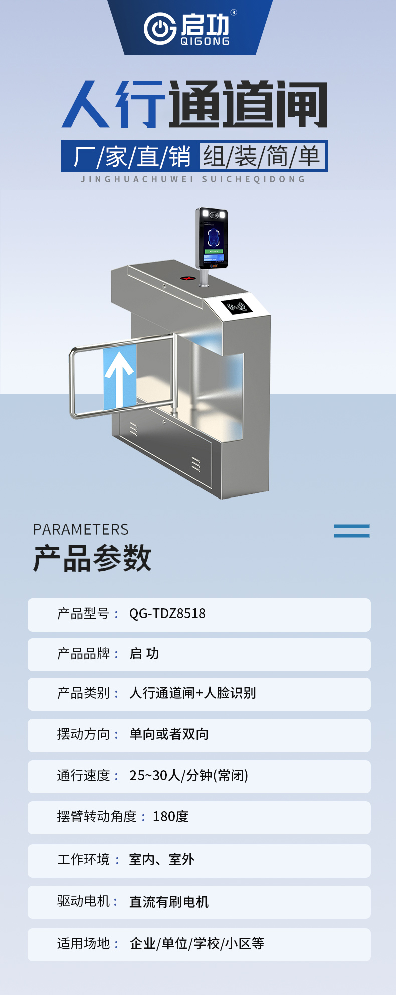 商品名称:启功人行通道闸单边摆闸加人脸识别机QG-TDZ8518