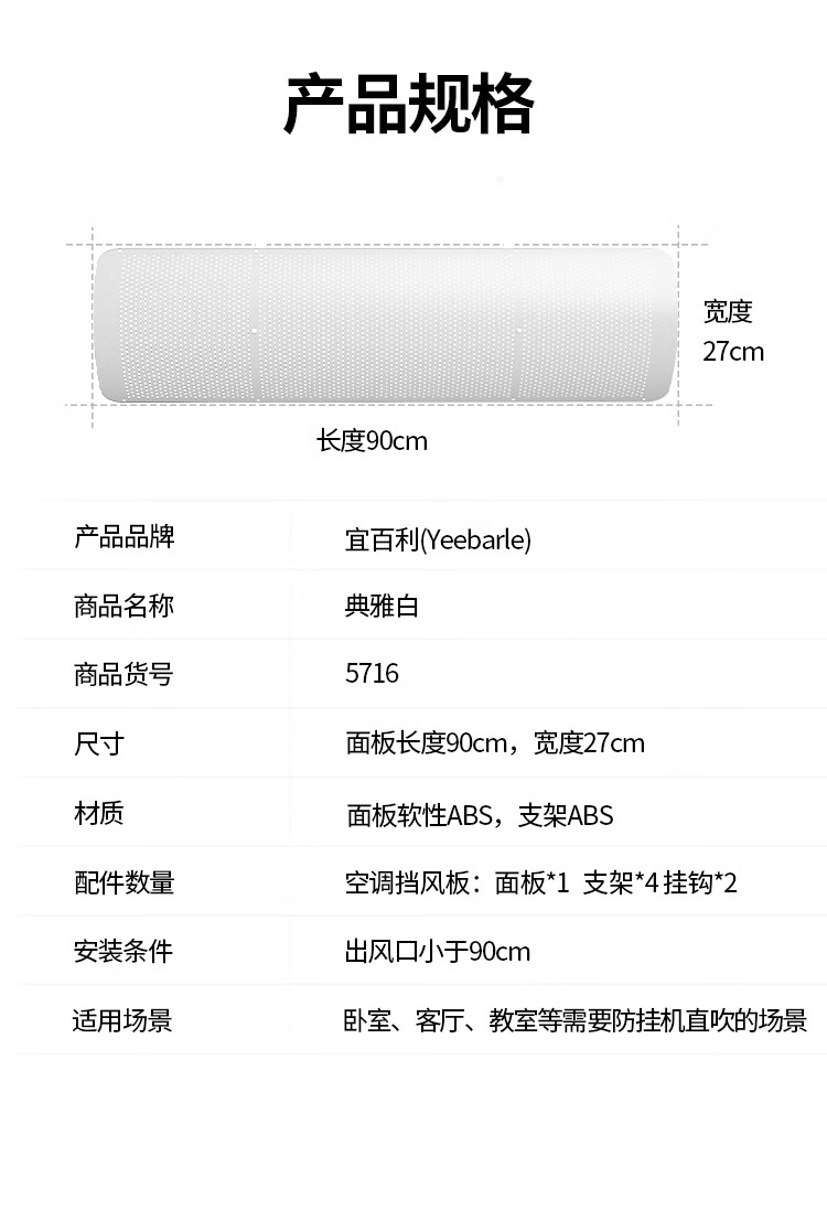 商品名称:宜百利 空调挡风板 防直吹挂式防风挡板多品牌全尺寸通用出口风防风罩 透风细孔版典雅白5716