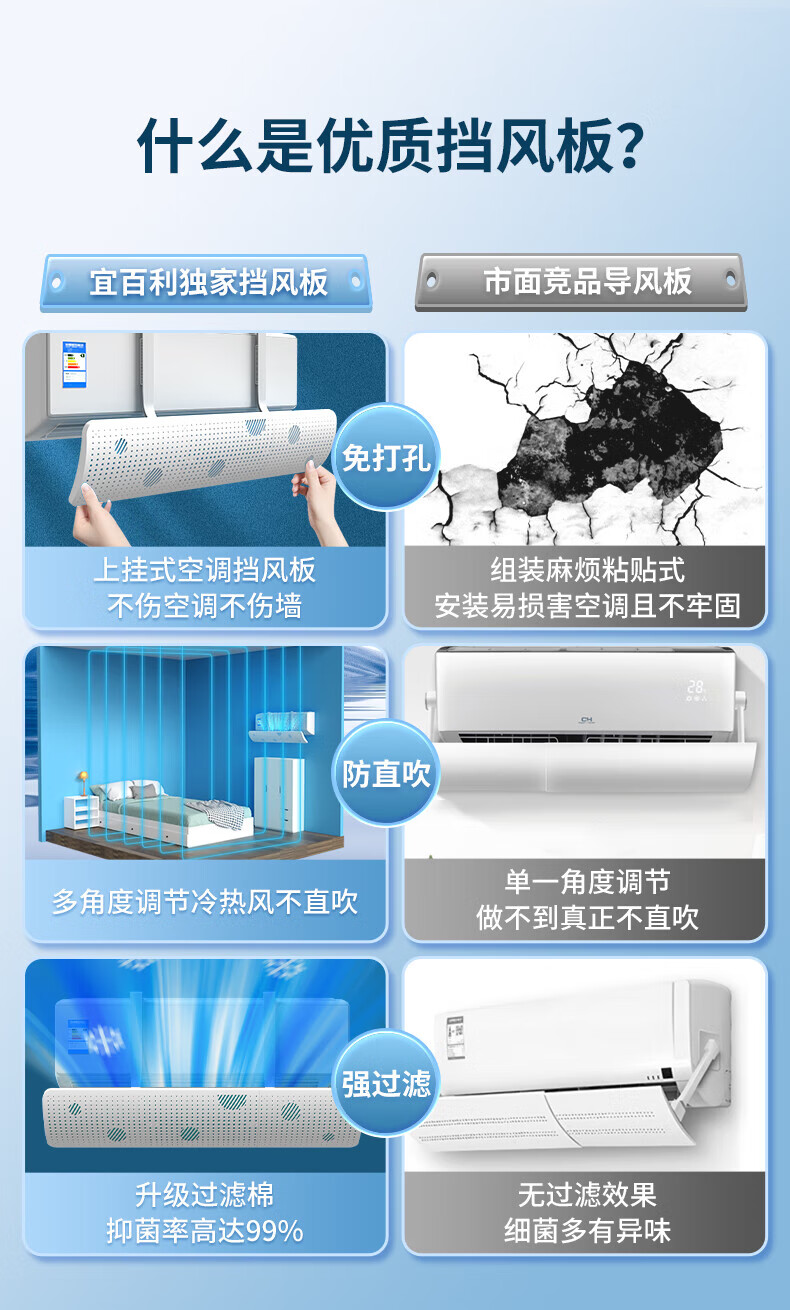 商品名称:宜百利 空调挡风板 防直吹挂式空调挡板 免打孔空调遮风罩格力美的奥克斯挂式通用过滤导风板星球5022