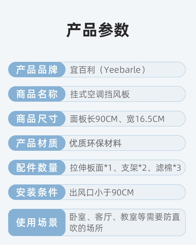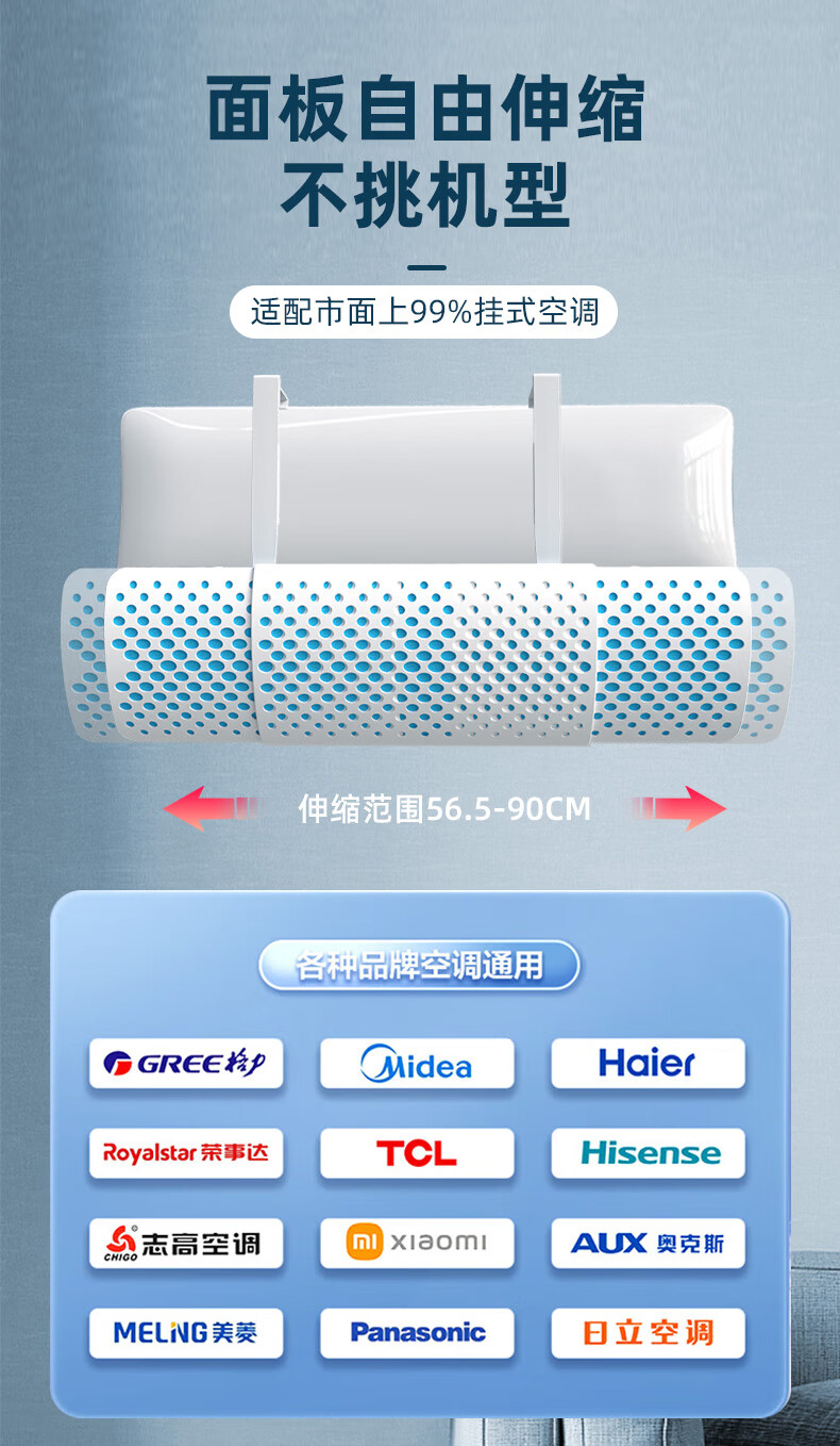 商品名称:宜百利免打孔空调挡风板月子婴儿防直吹空调挡板过滤遮风导风挡板罩格力美的海尔奥克斯挂式豪华小5023