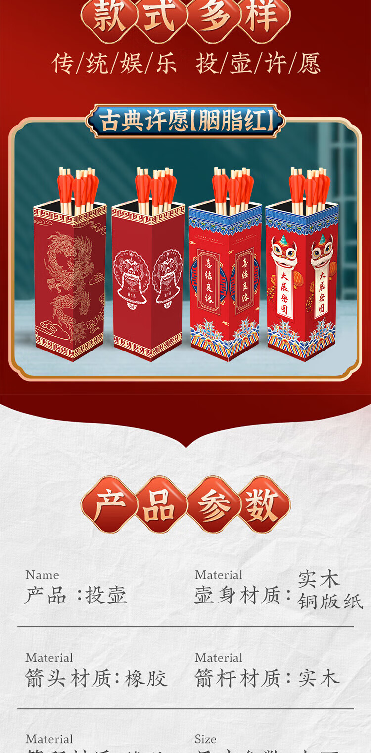 商品名称:投壶羽箭套装游戏儿童亲子成人接亲年会新年端午节趣味游戏道具端午安康33cm+10支33cm羽箭