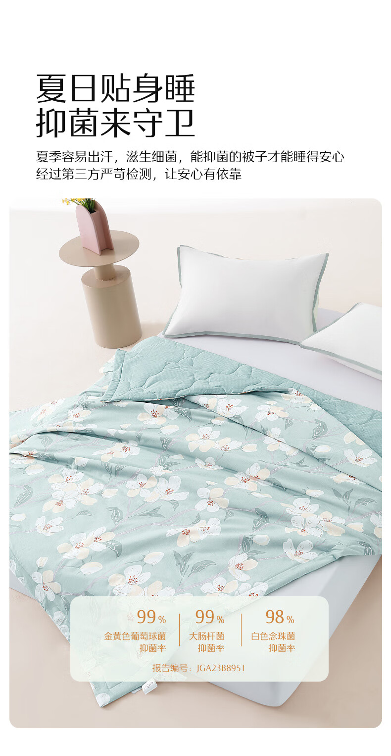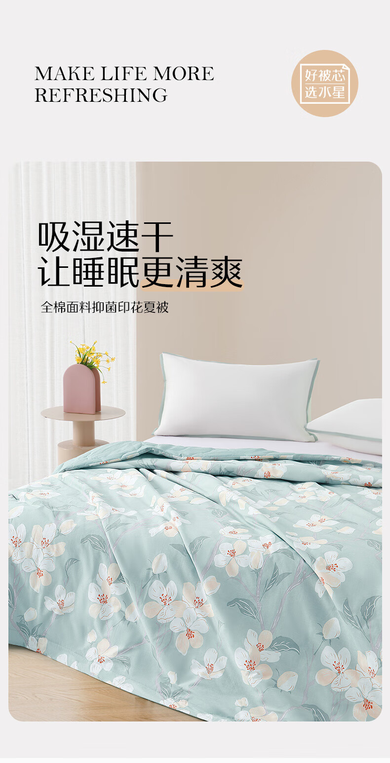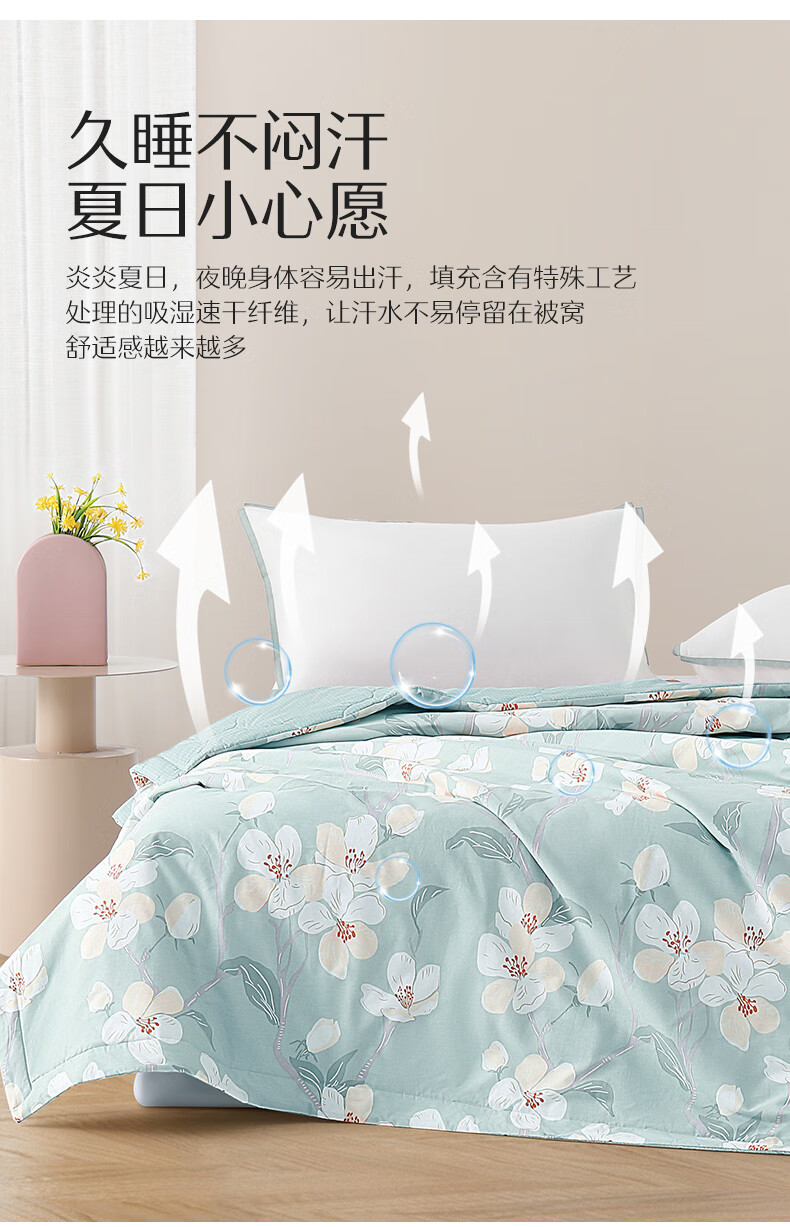 商品名称:水星家纺夏凉被子 纯棉抗菌夏季空调被 单人纤维被约2斤150*200cm绿