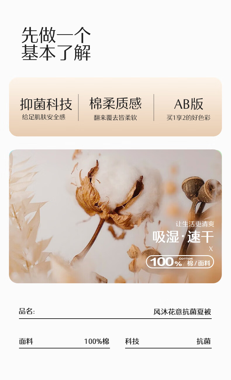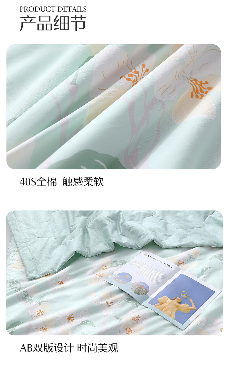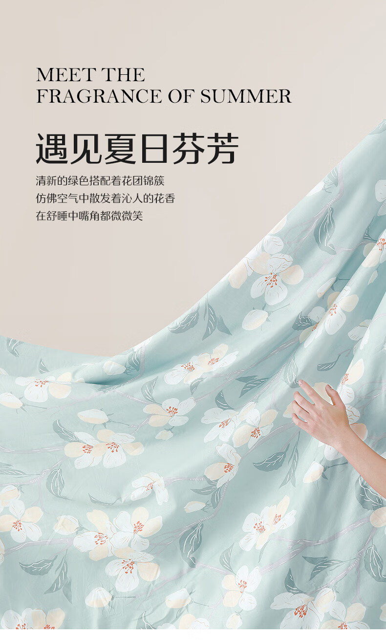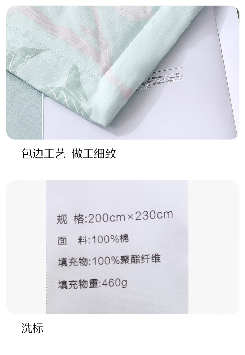 商品名称:水星家纺夏凉被子 纯棉抗菌夏季空调被 单人纤维被约2斤150*200cm绿