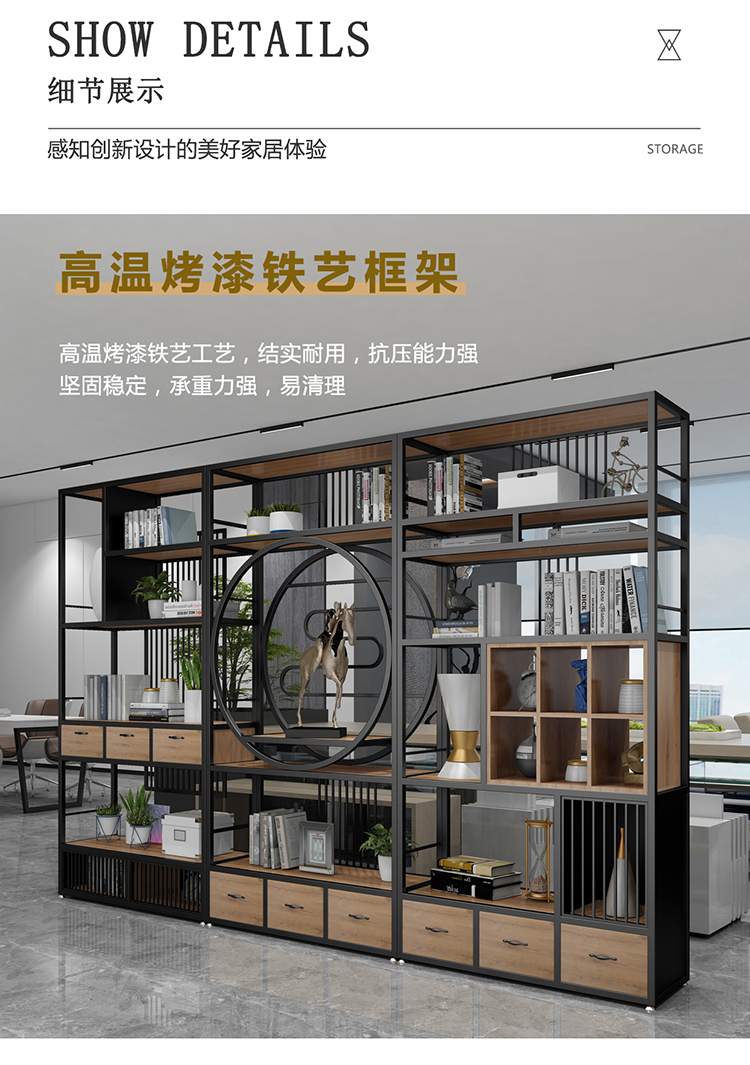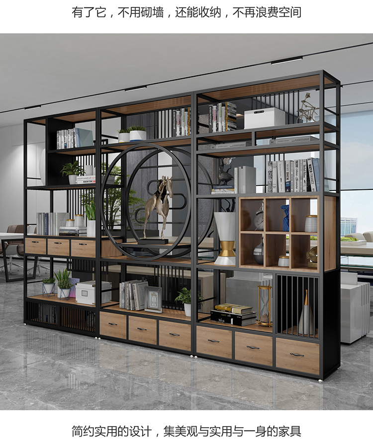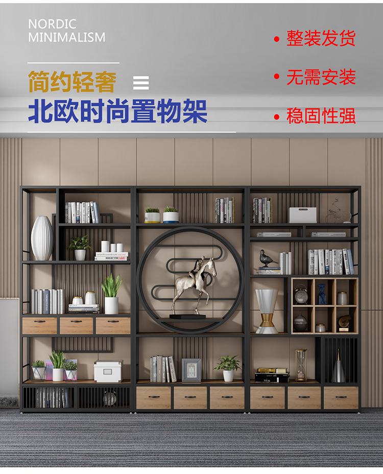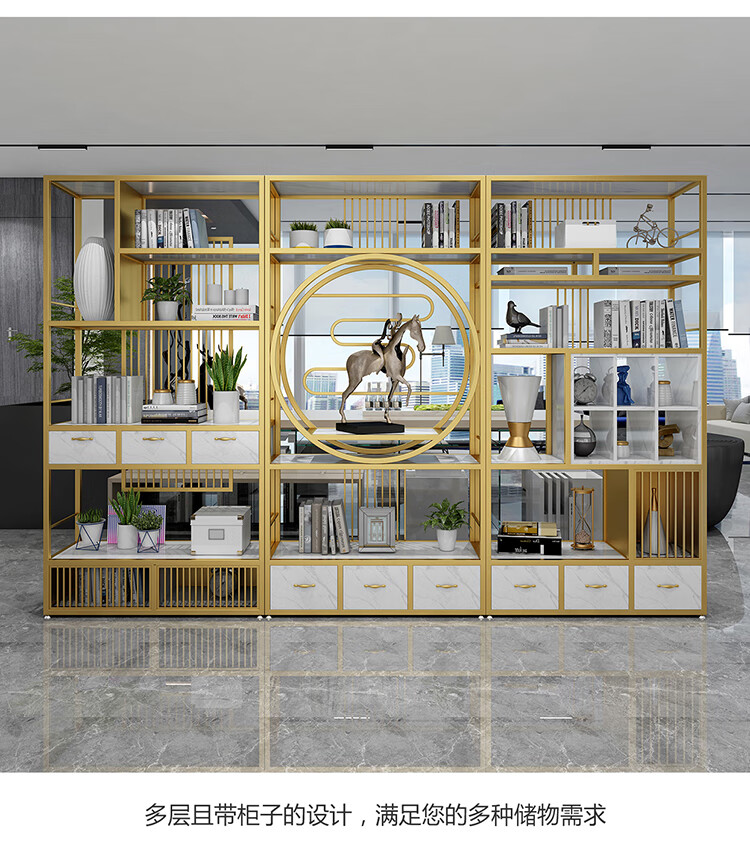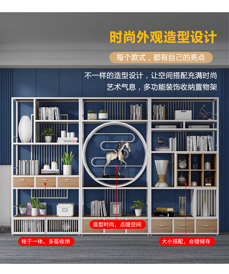 商品名称: 全新中式客厅装饰架收纳格子 书架铁艺落地置物架 1200*300*1800CM