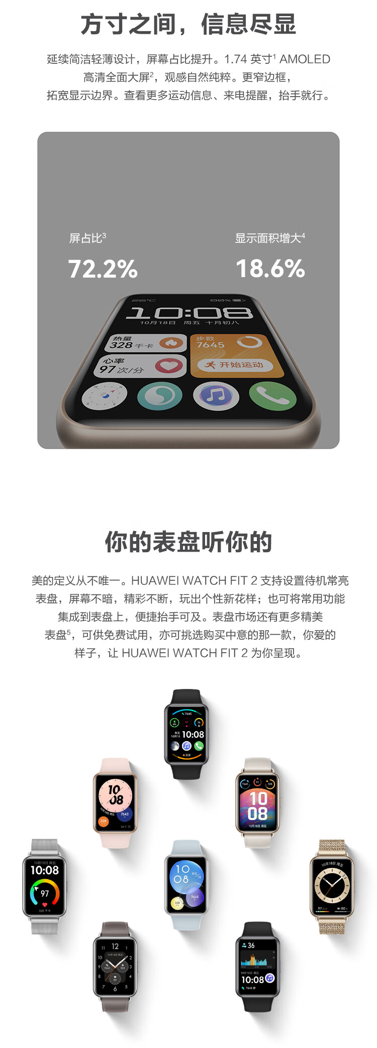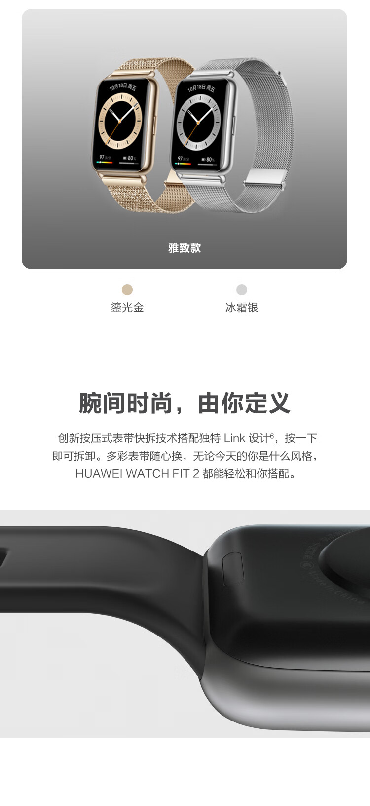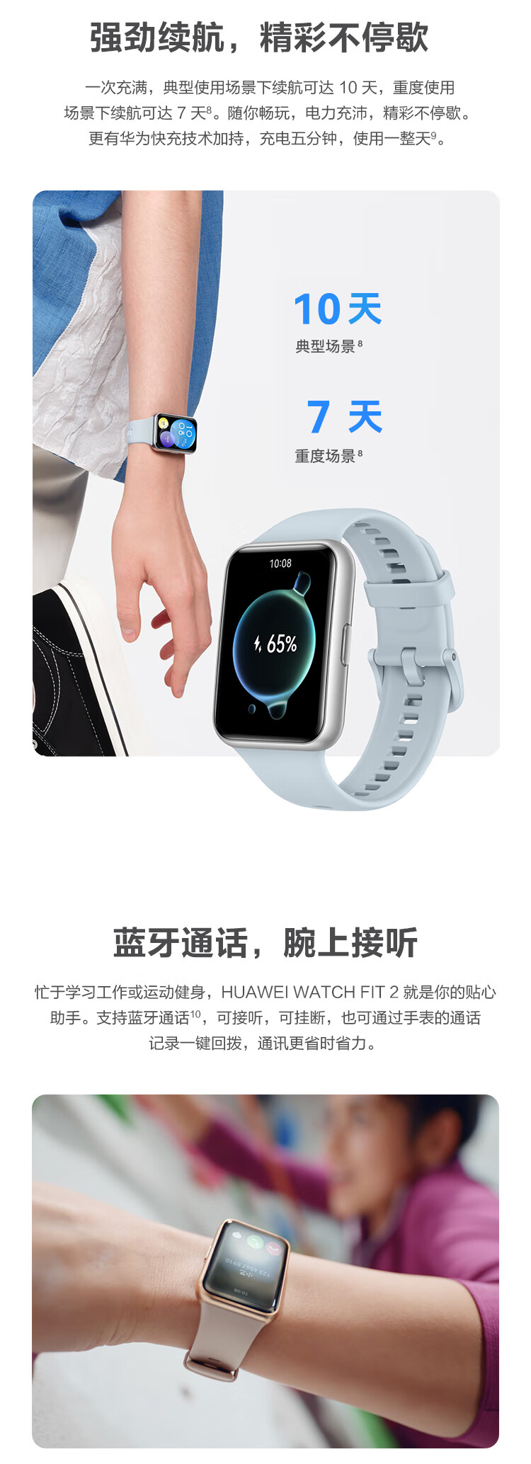 商品名称:华为WATCHFIT2活力款华为手表运动智能手表血氧自动检测蓝牙通话长续航户外运动专享