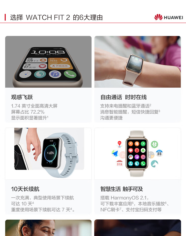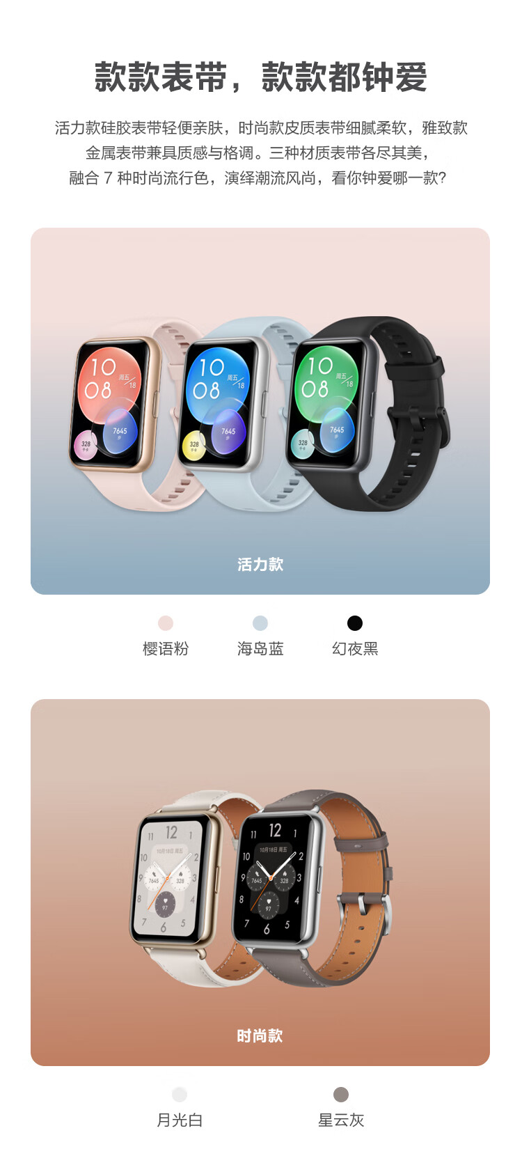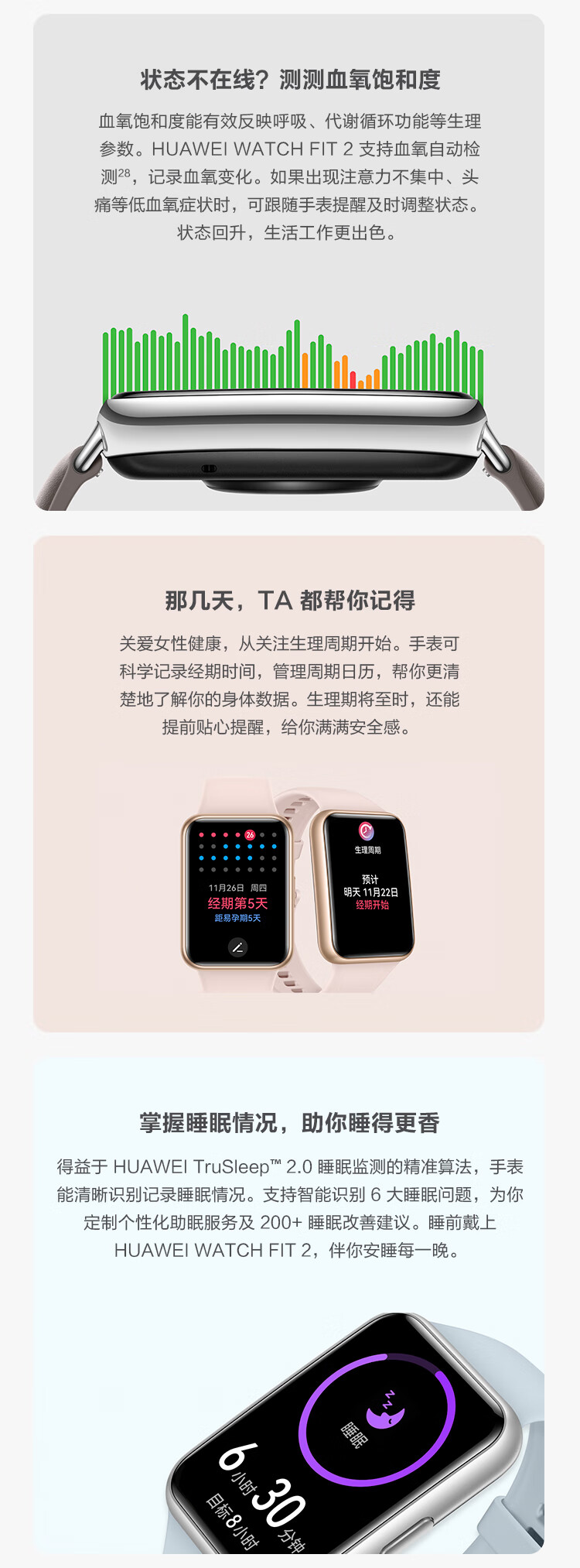 商品名称:华为WATCHFIT2活力款华为手表运动智能手表血氧自动检测蓝牙通话长续航户外运动专享