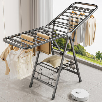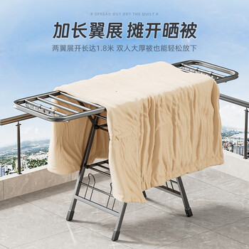 商品名称: 晾衣架落地衣架折叠挂衣架室内晾衣杆阳台晒被子架三层鞋撑1.8m
