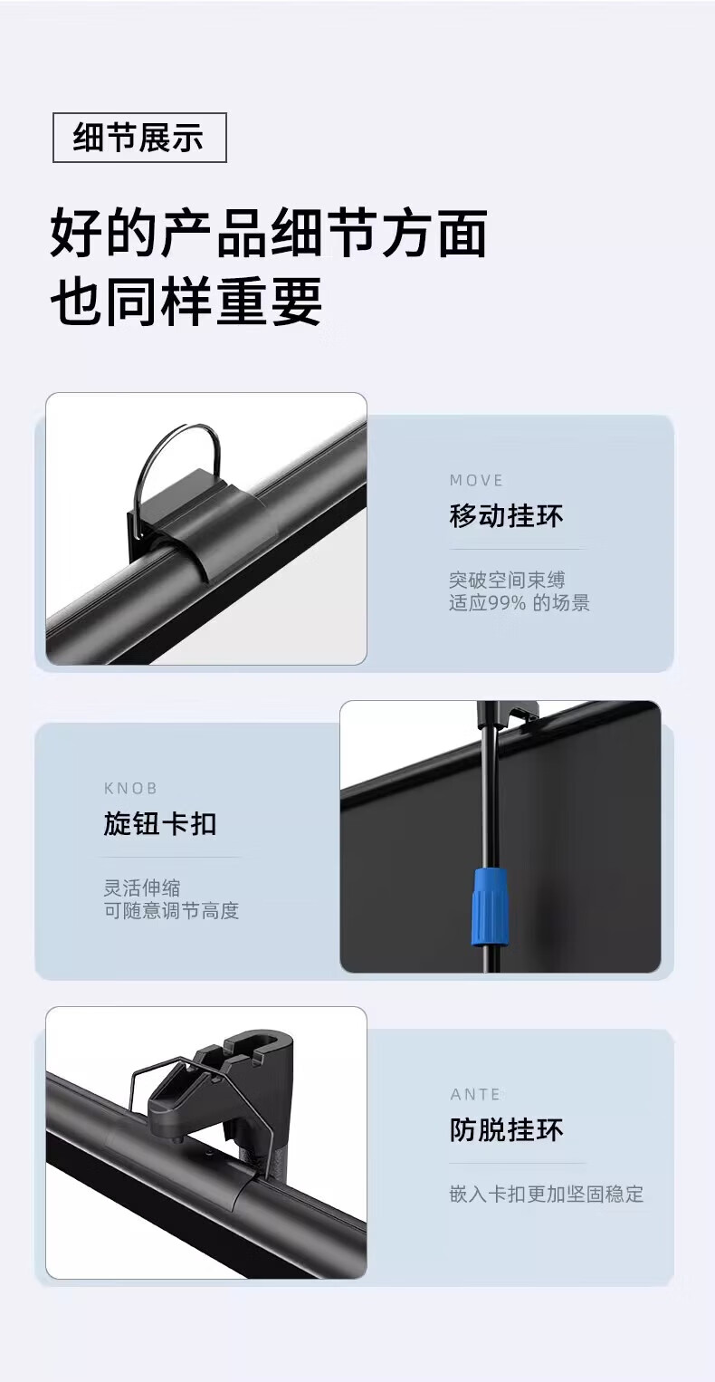 商品名称:科速莱tymbbs100 投影幕布100英寸白塑支架免打孔挂壁两用