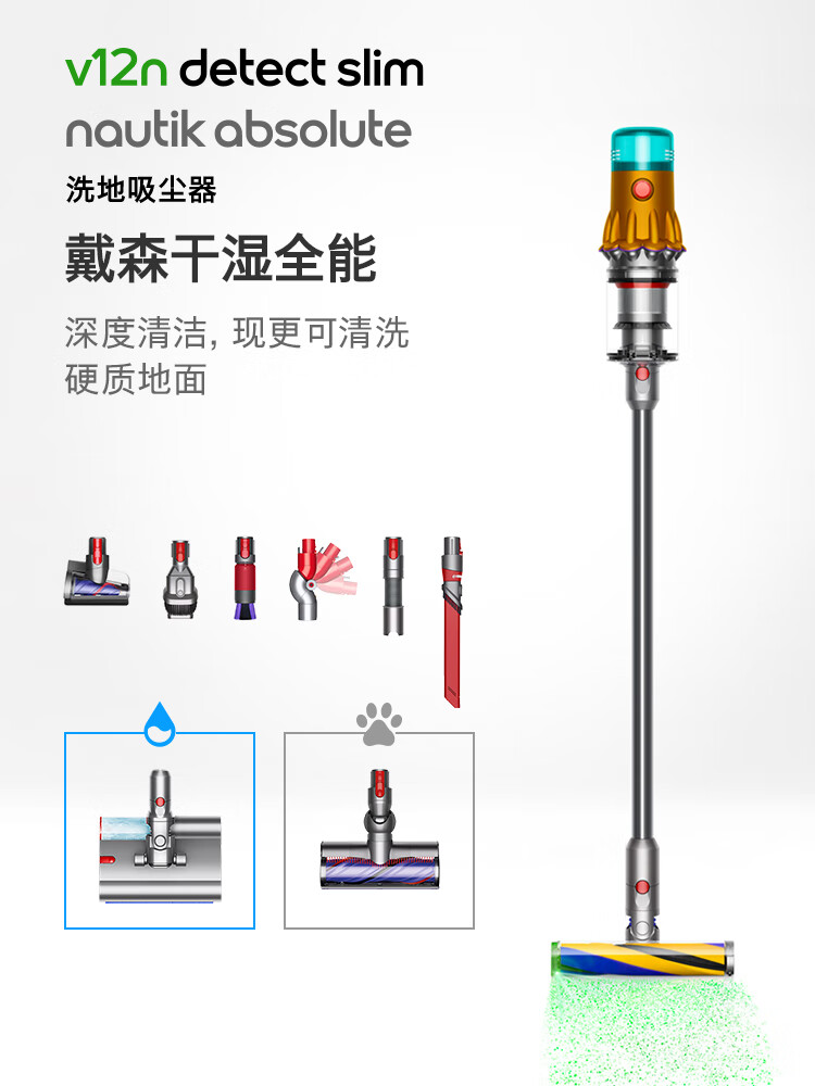 商品名称:Dyson戴森V12N Nautik Absolute无线洗地机吸尘器 吸拖一体家用