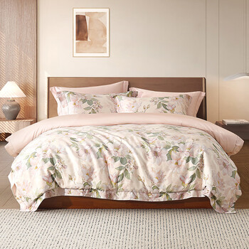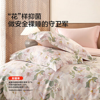 商品名称:水星家纺60S长绒棉四件套 繁花·花春城(抗菌) 1.8米床 适配220*240cm被芯